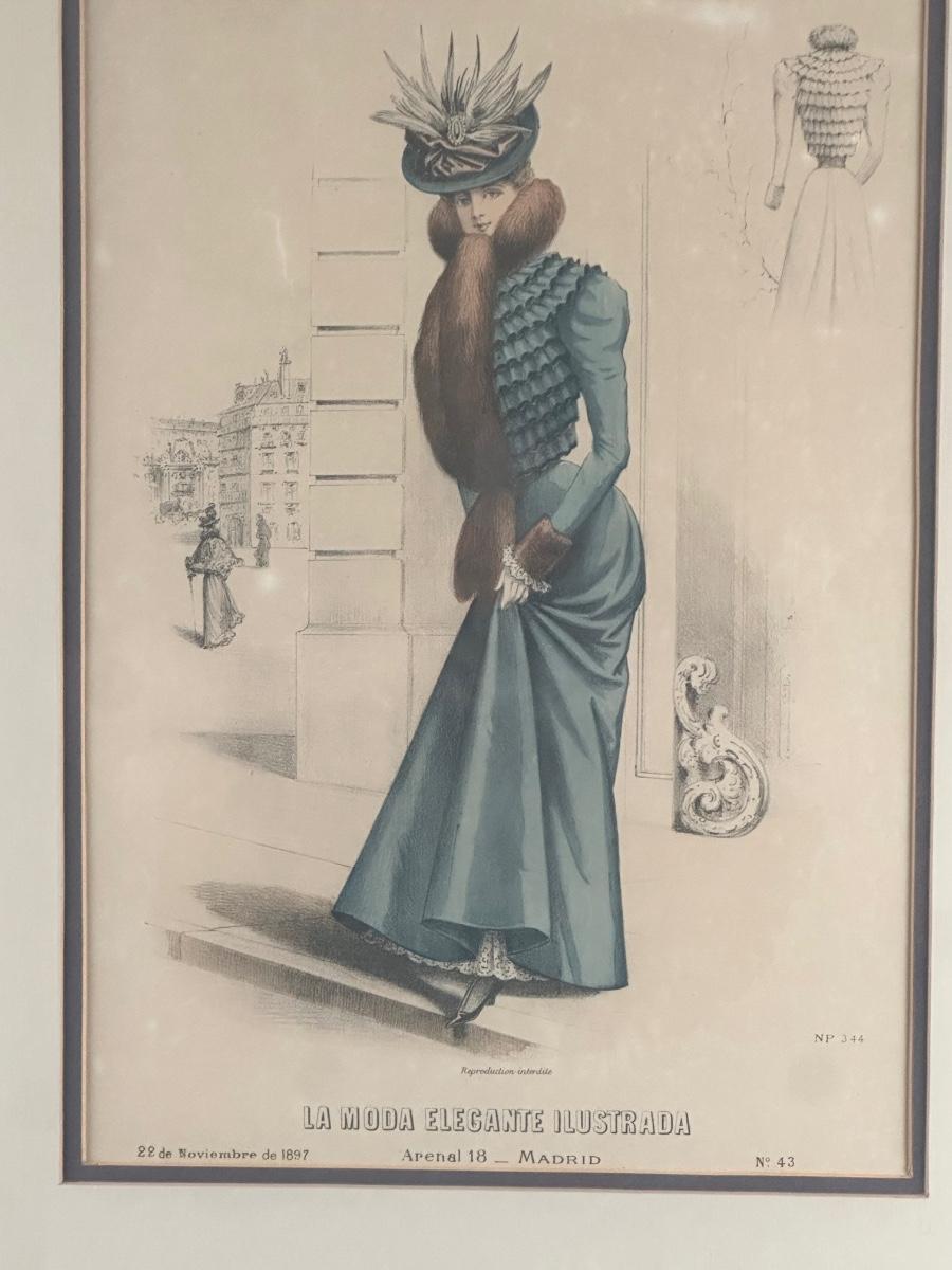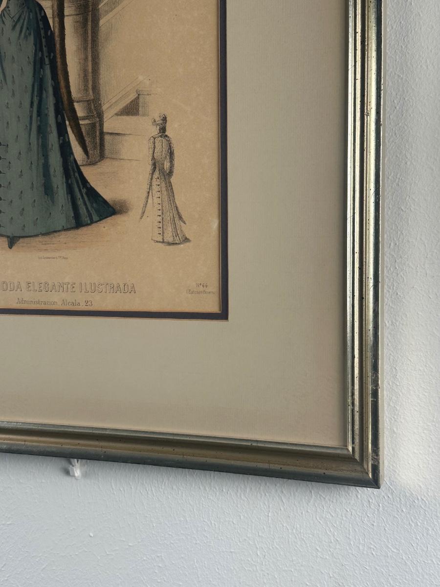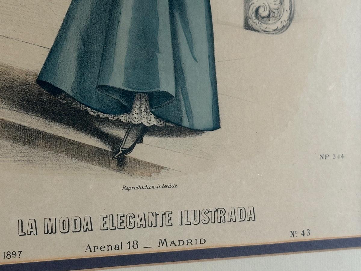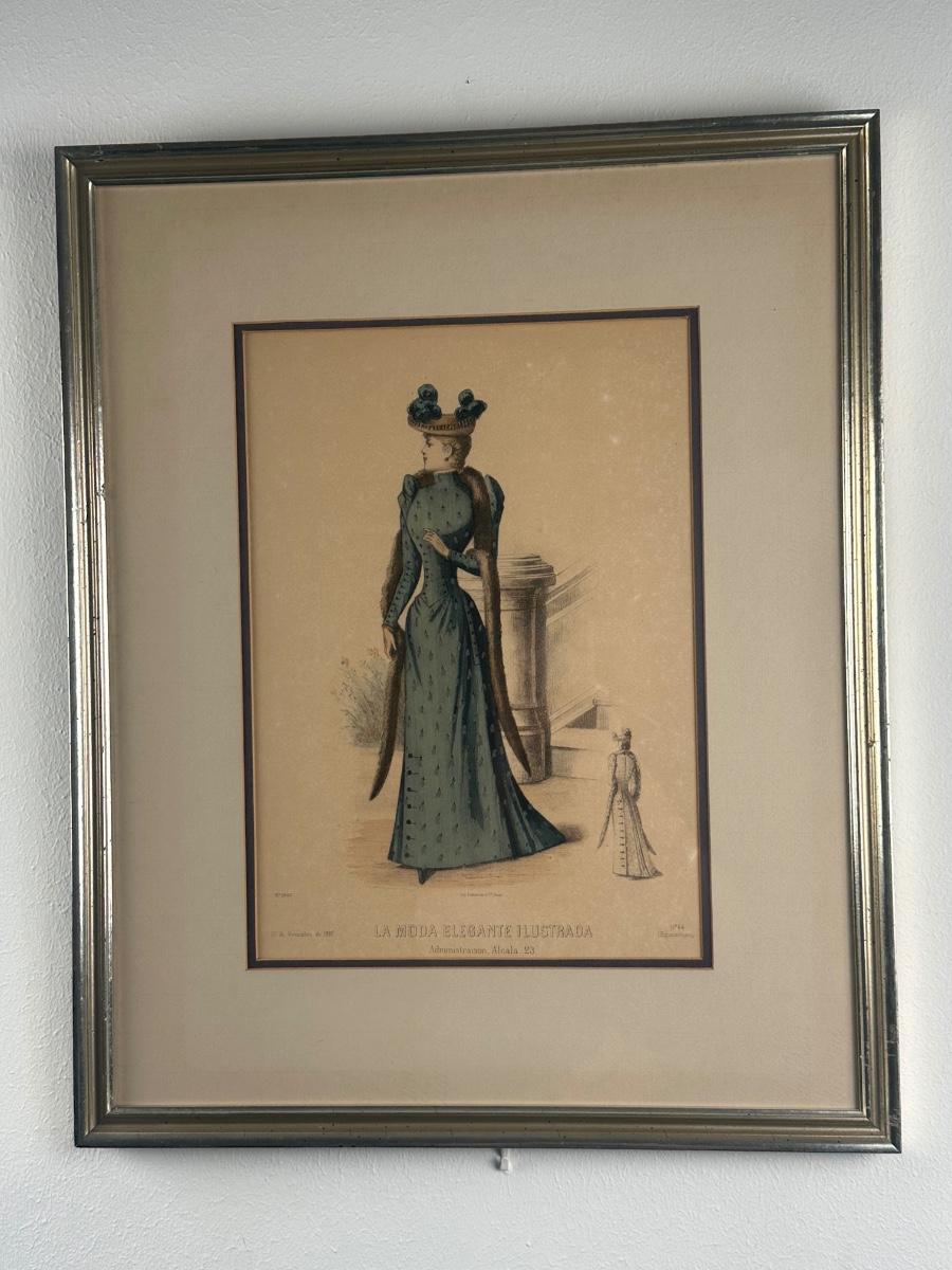 Pair of Framed Victorian Dress Illustrations from 1890s
