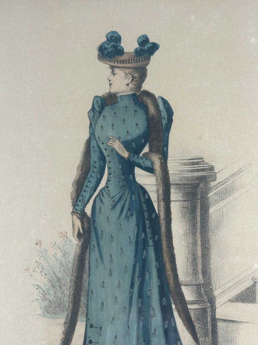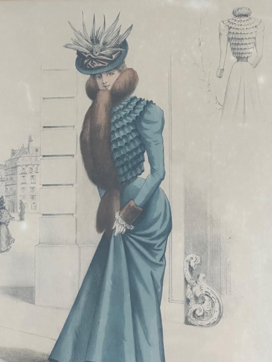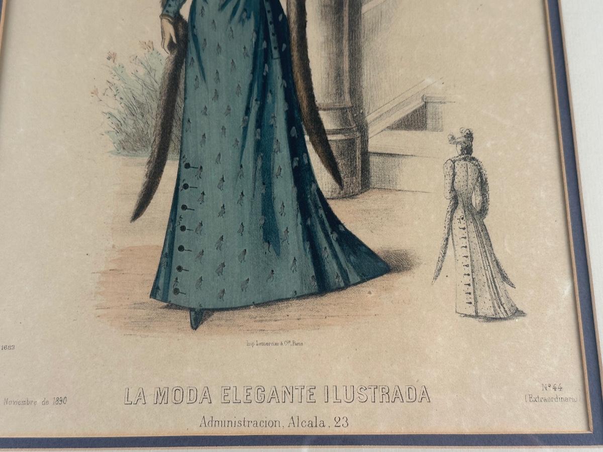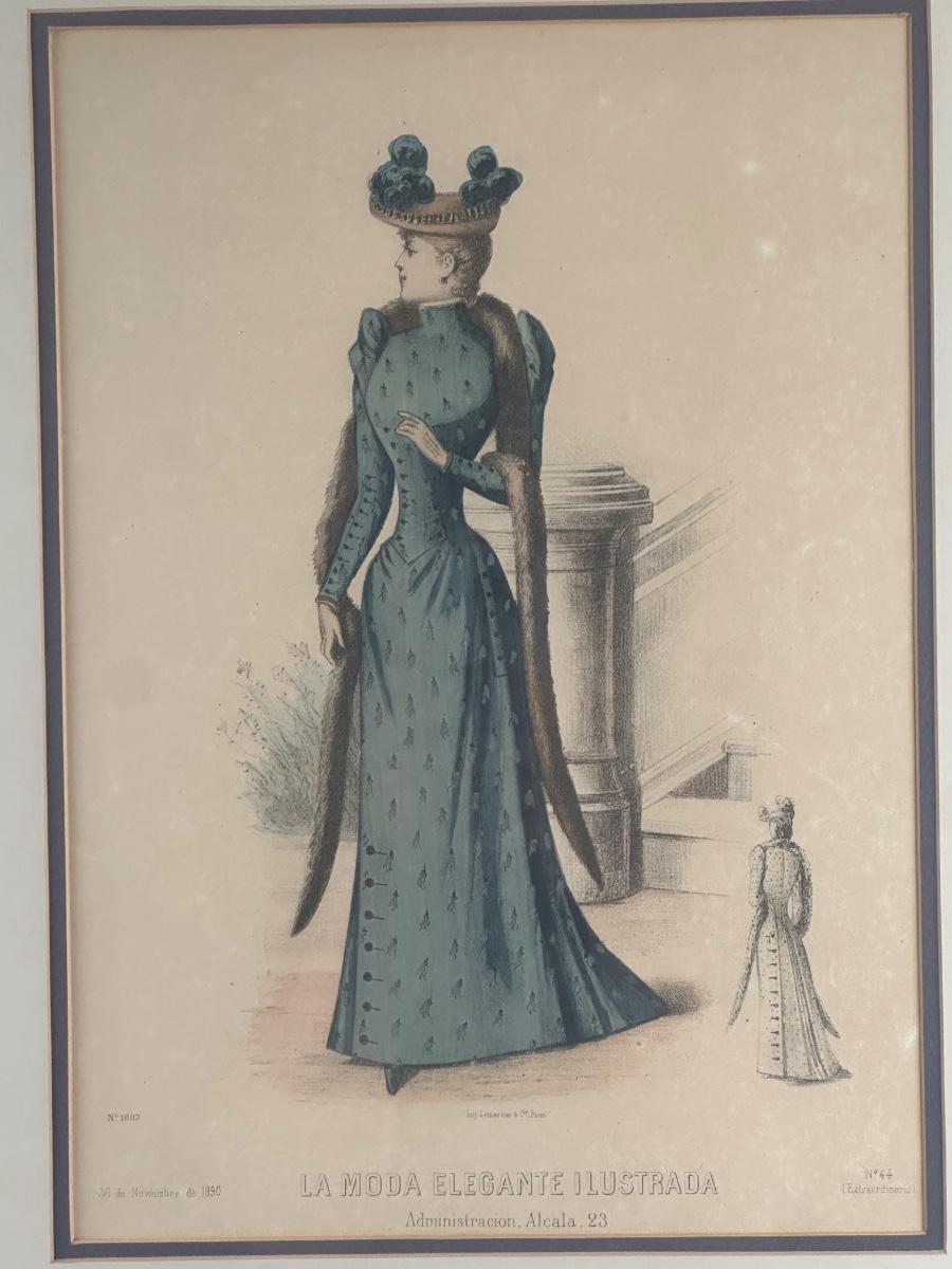 Pair of Framed Victorian Dress Illustrations from 1890s