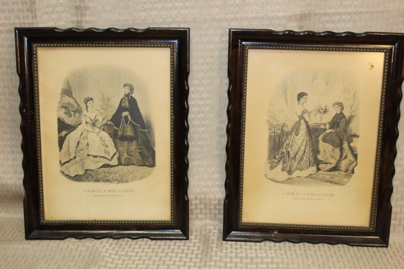 Framed pair of Victorian Illustration Prints. Matching frames measure 11x14.