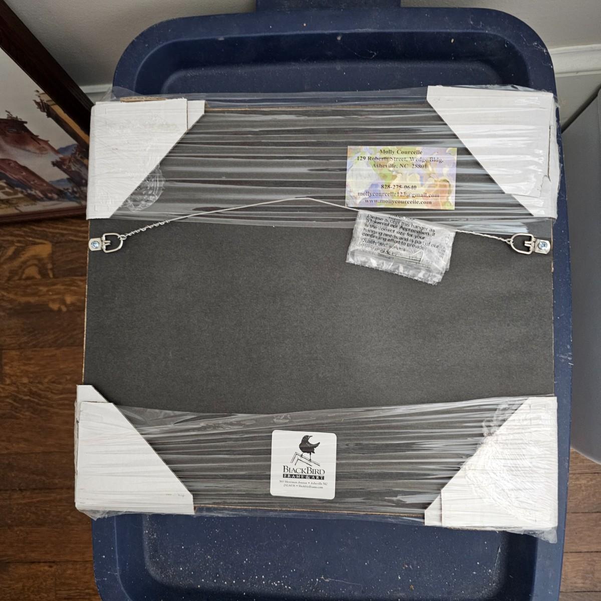 Fun close ups of a young bird and also eggs in the nest. Created by local artist Molly Courcelle, these new in package prints would look good anywhere. Pencil titled and signed by the artist. Each measure 15" x 12.75"H. See photos for details. Shipping available. Shipping can be costly. We suggest contacting our preferred local shipping provider, Postage Express, with dimensions and getting an estimate before bidding: (828) 255-9250 or shipping@postageexpressnc.com.