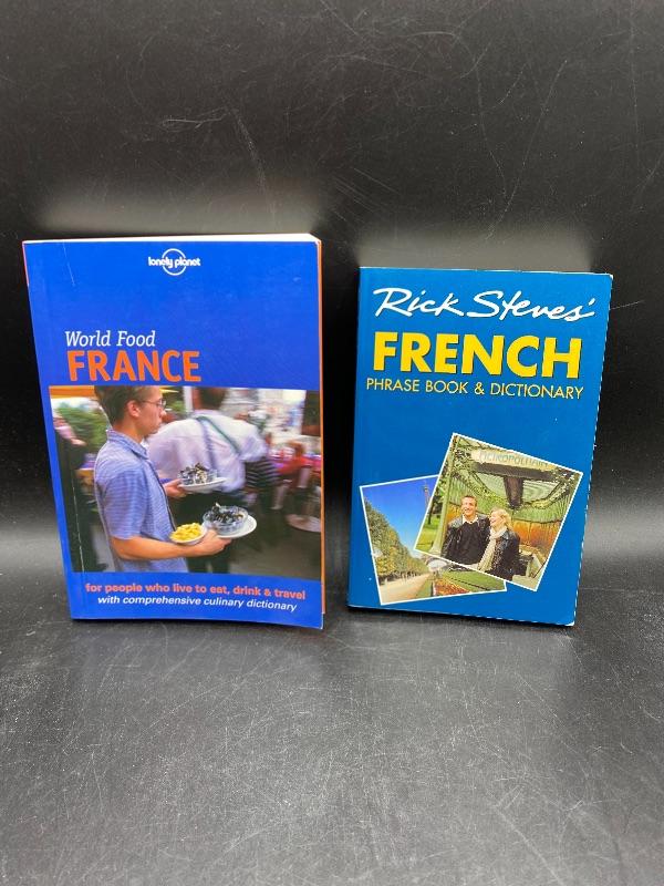 Pair of French travel books. World Food France and Rick Steves’ France. Both great for that anyone planning a future trip to France. Small size, easy to pack in luggage.