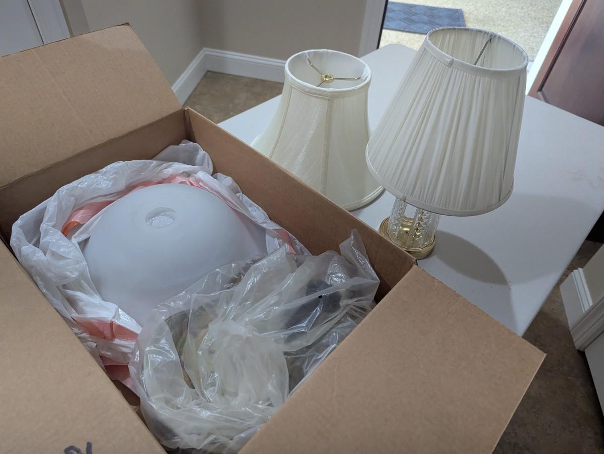 Pair Of Frosted Dome Lights & Crystal Lamp (SR)