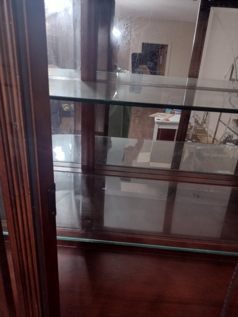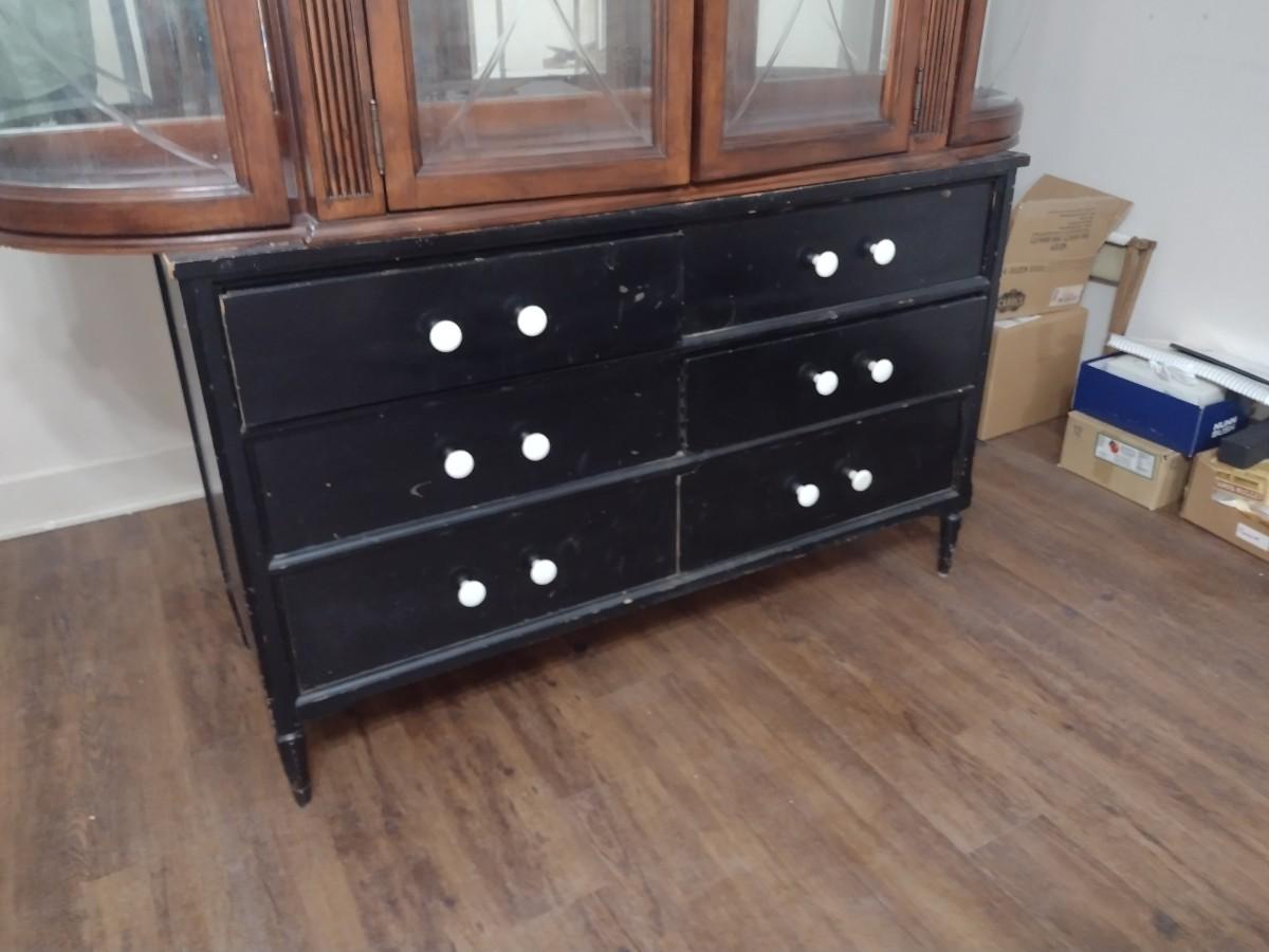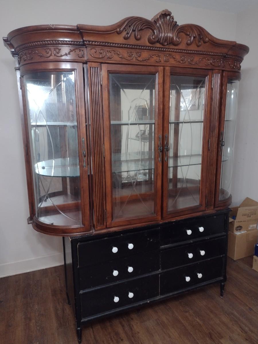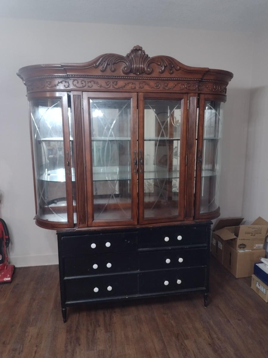 Pair of Funiture Pieces includes Glass Front Display Hutch and Vintage Six Drawer Dresser