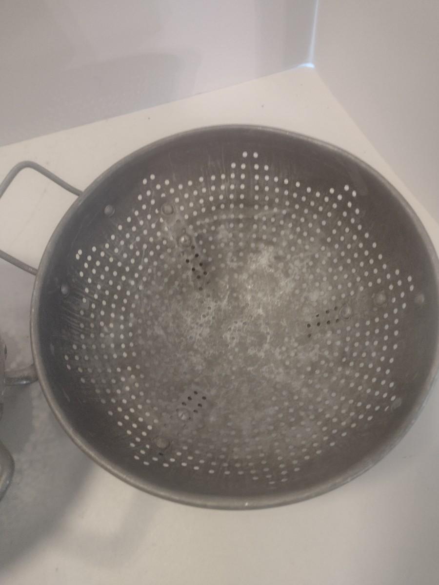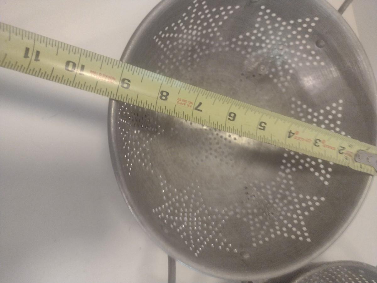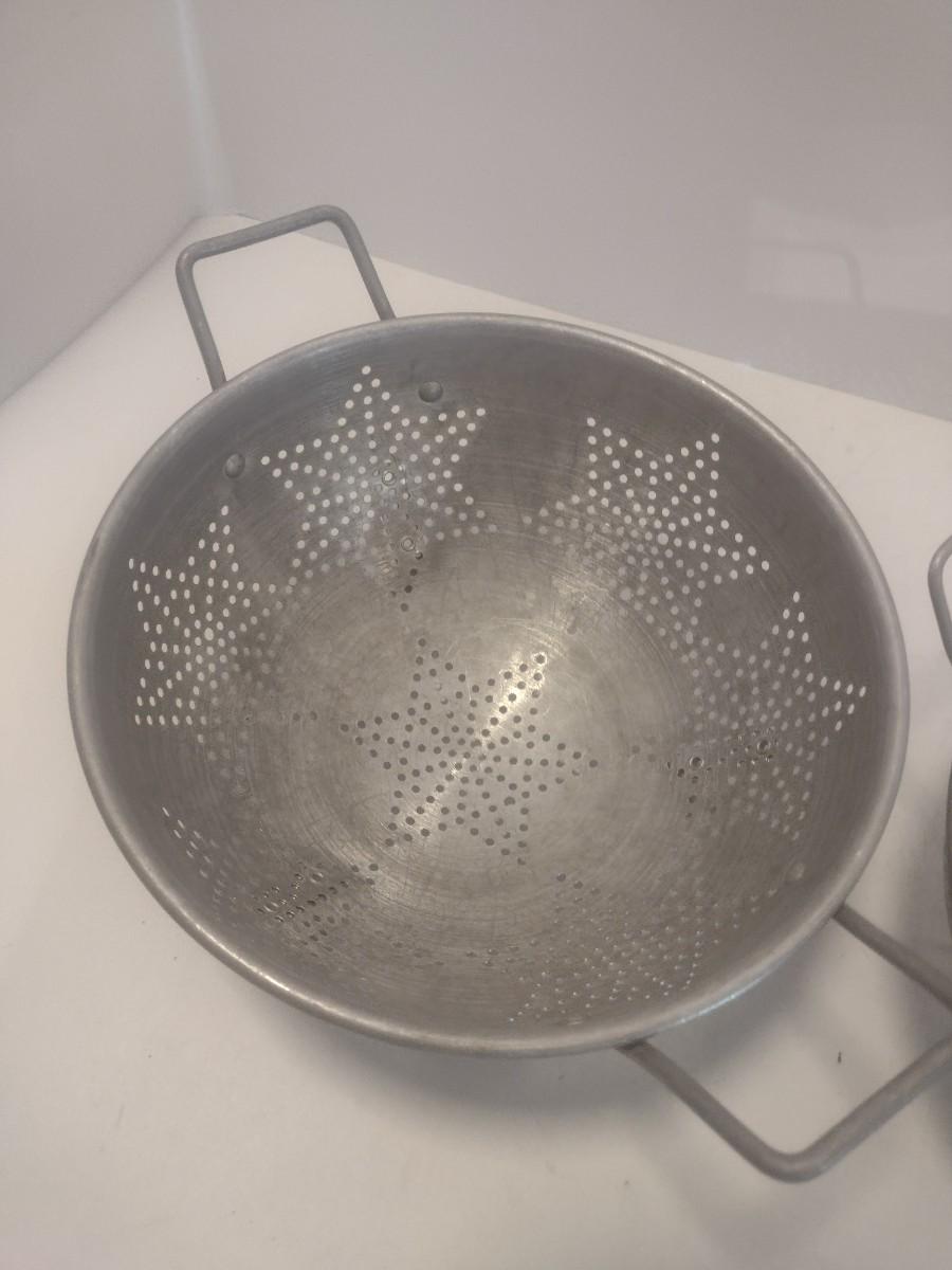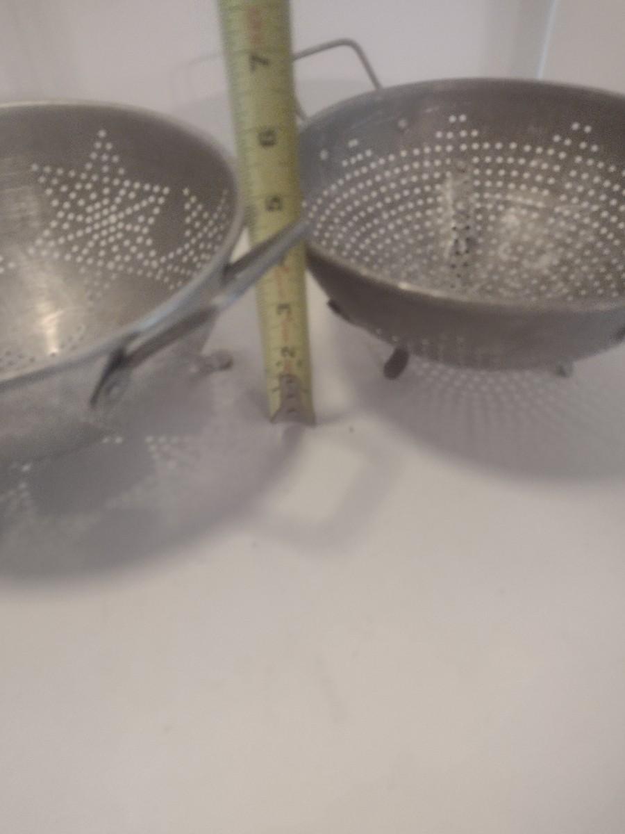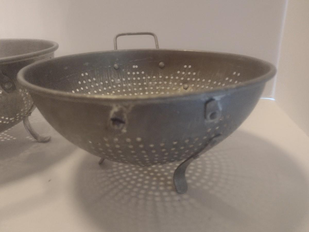 Pair of Galvanized Kitchen Colanders. Small one has missing handle as shown.