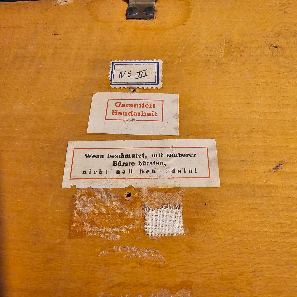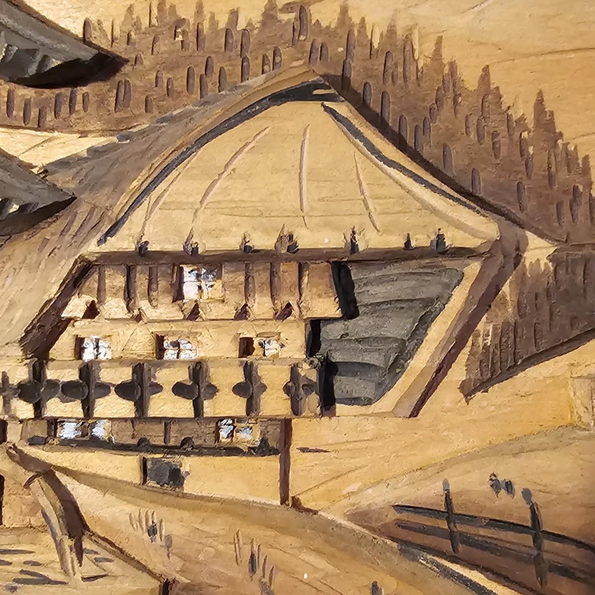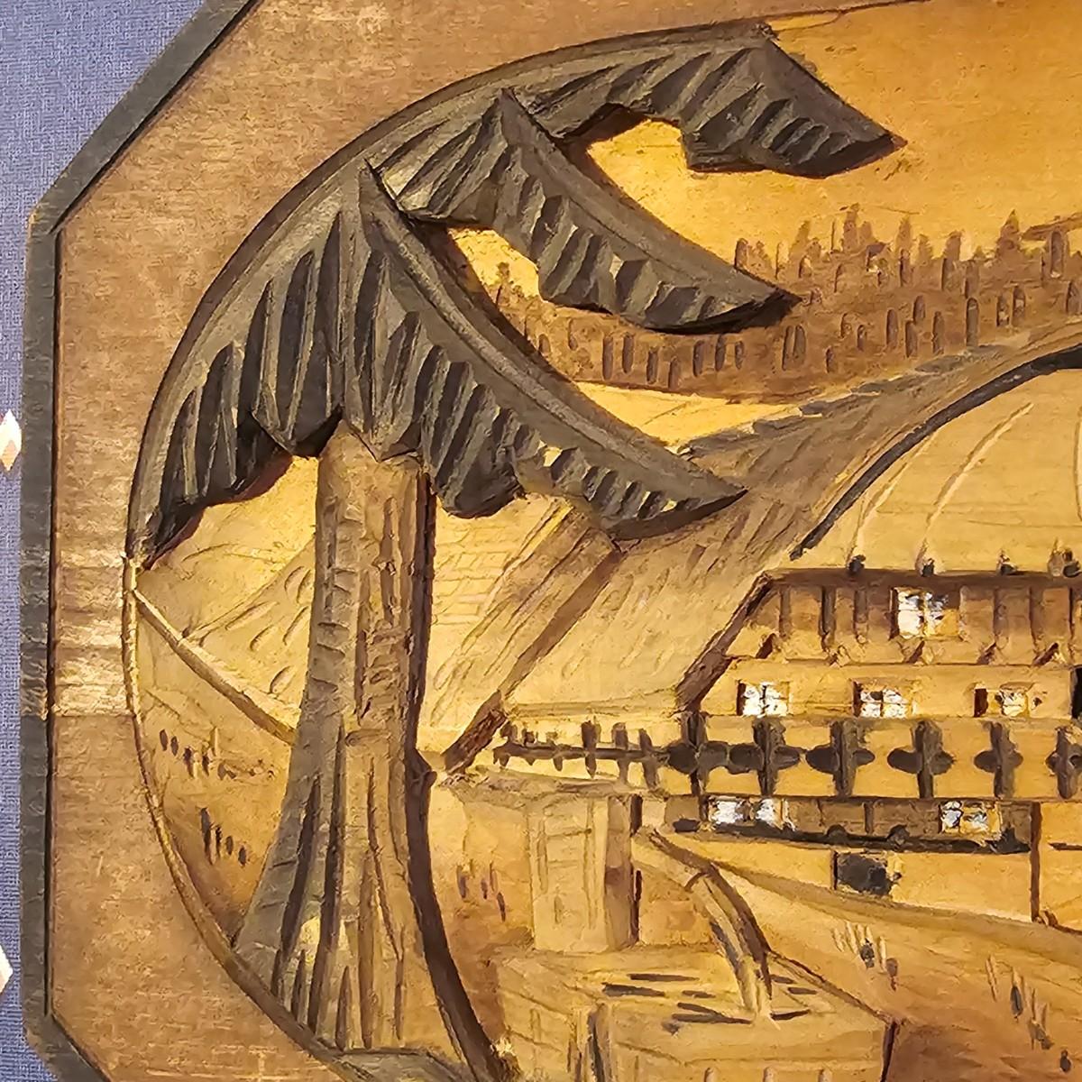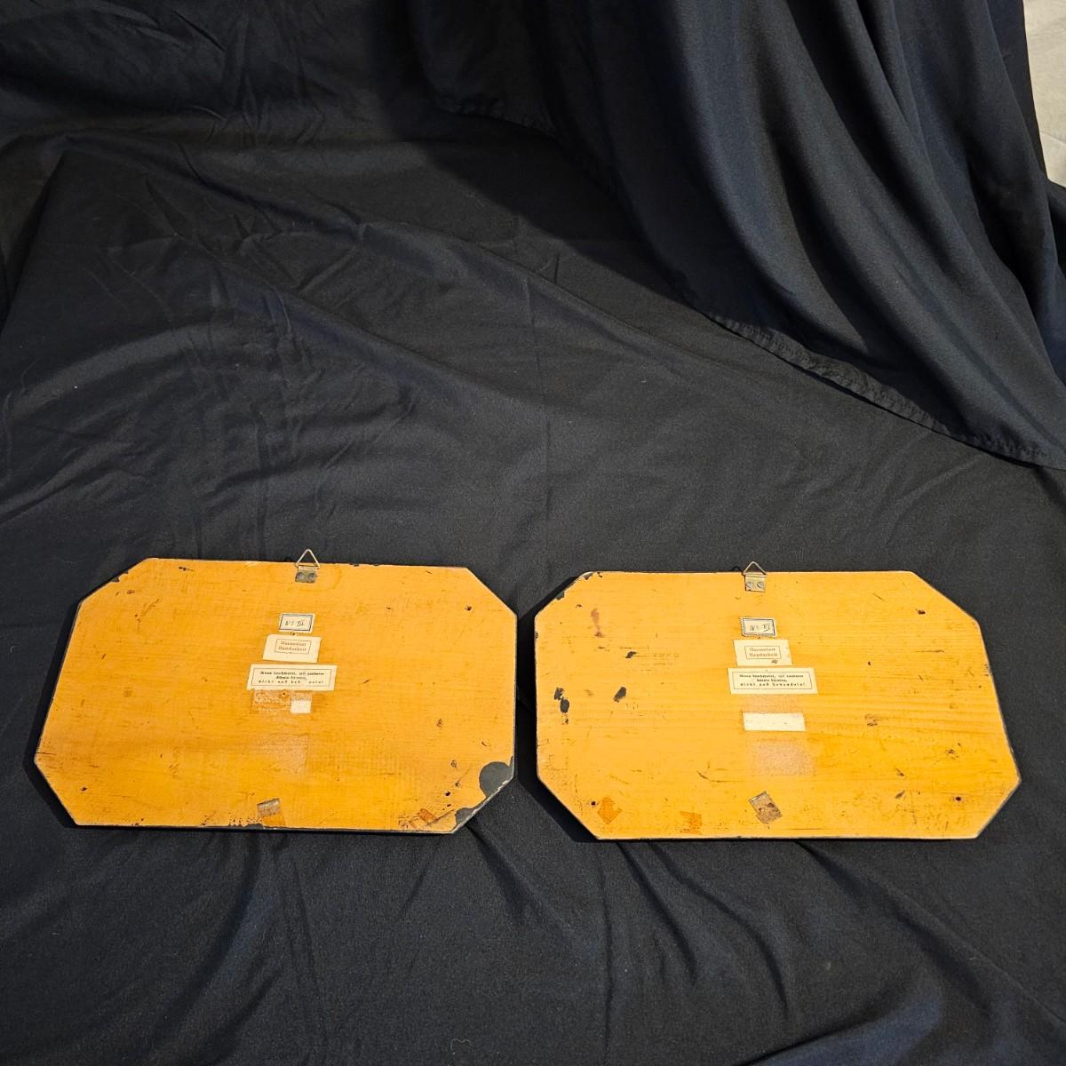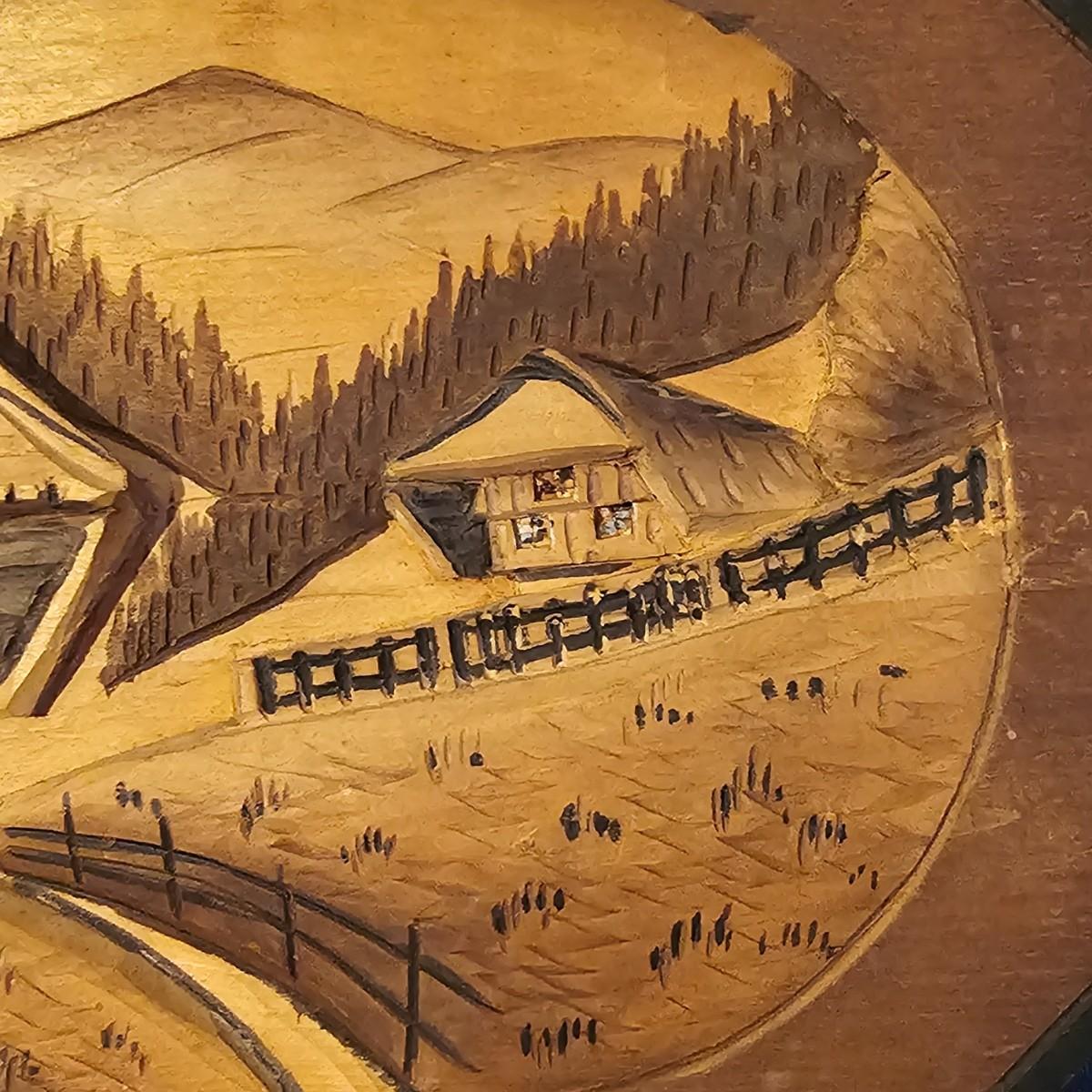 Beautiful vintage pair of woodcuts of schloss and countryside vignettes. 3-D depth with trees and mountains, each piece measures 11.5" x 7"H. Stamps on back indicate No. III, and Garantiert Handarbeit, and what appears to be care instructions in German. See photos for details. Shipping available.