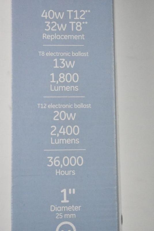 Pair of GE Cool White Universal T8/T12 LED 1" x 48" - New