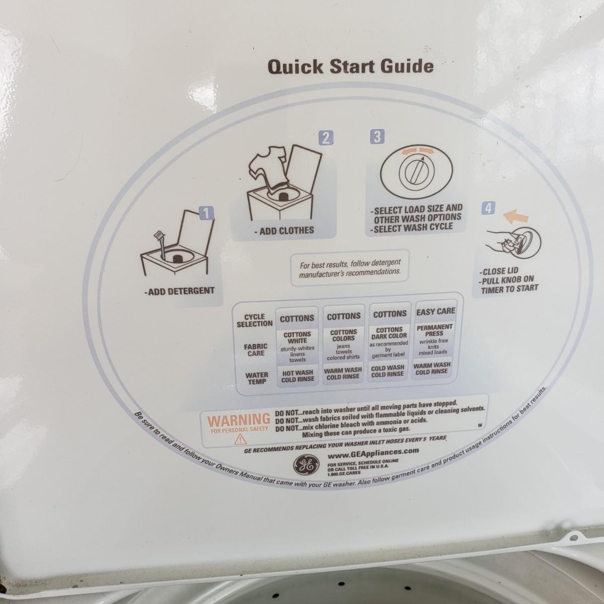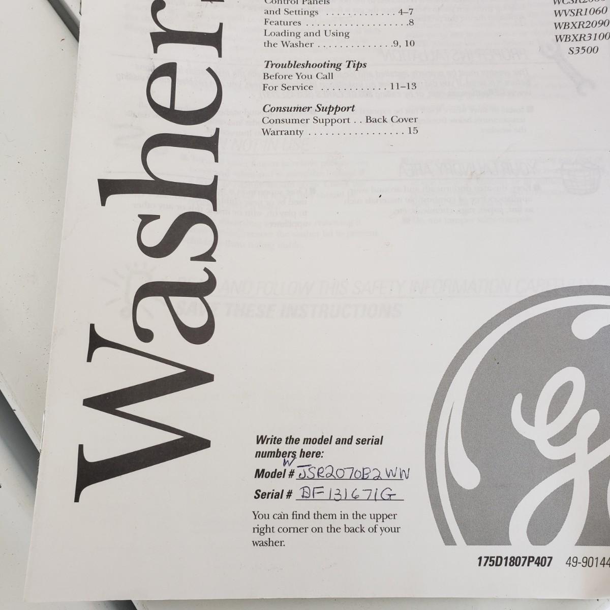 This washer is made by General Electric. See pictures for model number. Comes with owner manual. Washer is located on a back porch and up a short flight of stairs. Local pickup only. Winning bidder must bring assistance to help move and load this item due to its weight and/or size.