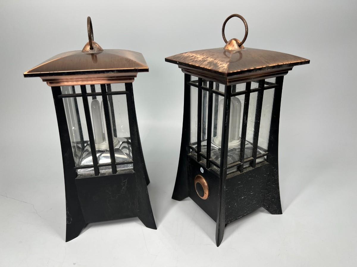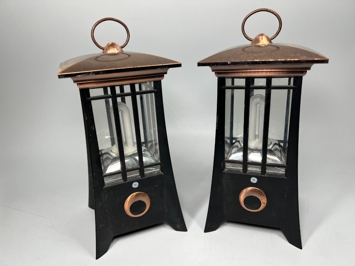 Pair of General Electric Mission Fluorescent Lanterns, one of the lanterns already had batteries and is in working condition, the other was not tested with new batteries. Check pictures for more details and for sizing.