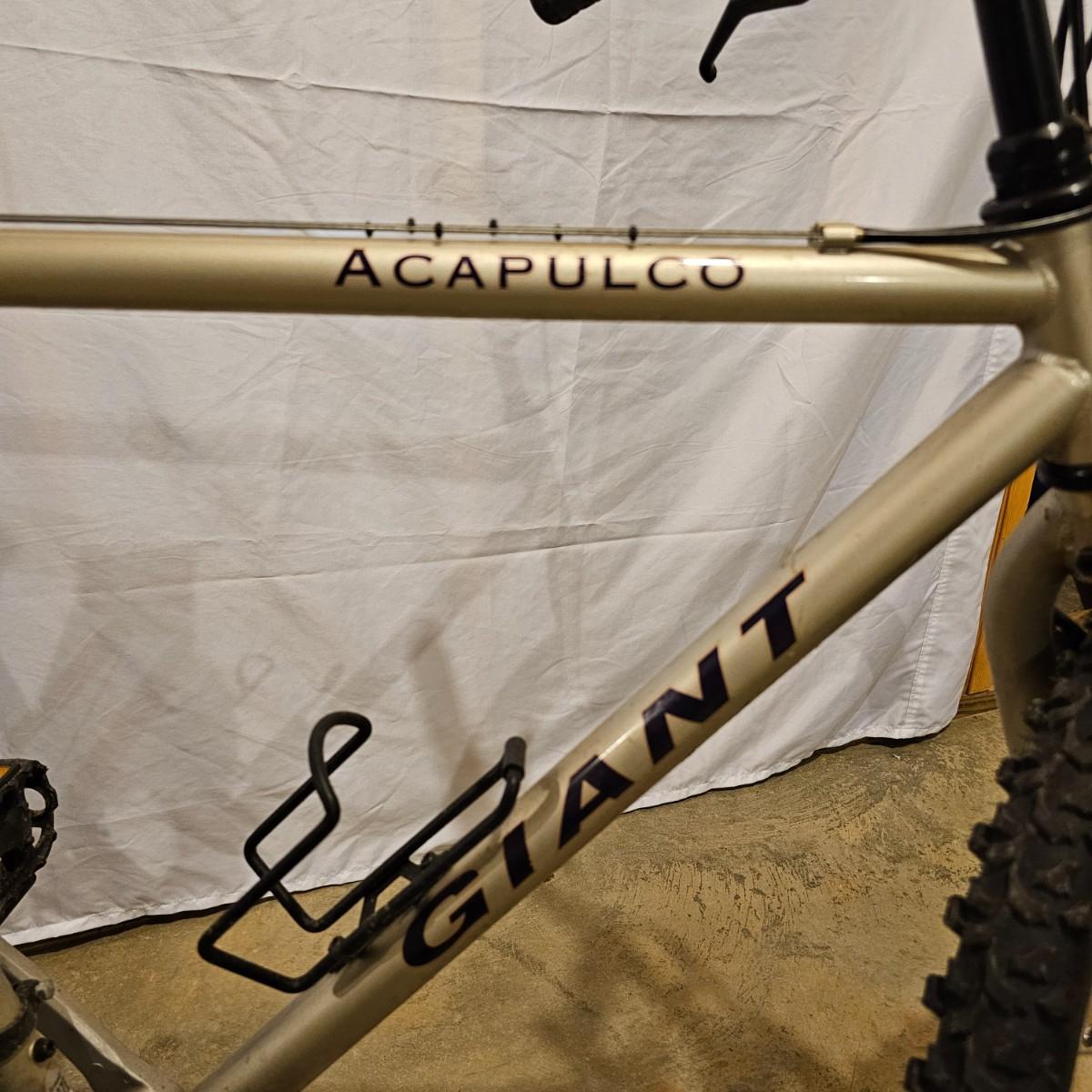 A pair of his and hers bicycles, Acapulco models by Giant. Both bikes have 26" mountain type tires, 21 speed twist grip shifters and center pull brakes. A full kickstand and water bottle holders complete the setup. Bikes have been stored indoors in basement. Tires all have good air. Each bike measures 23" x 64" x 39"H, has adjustable sest height. See photos for details. Local pickup only.