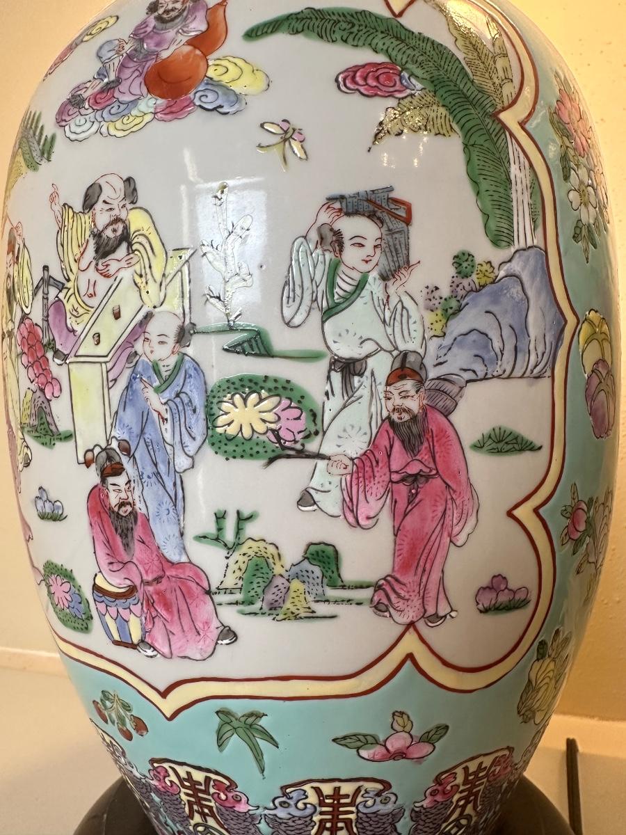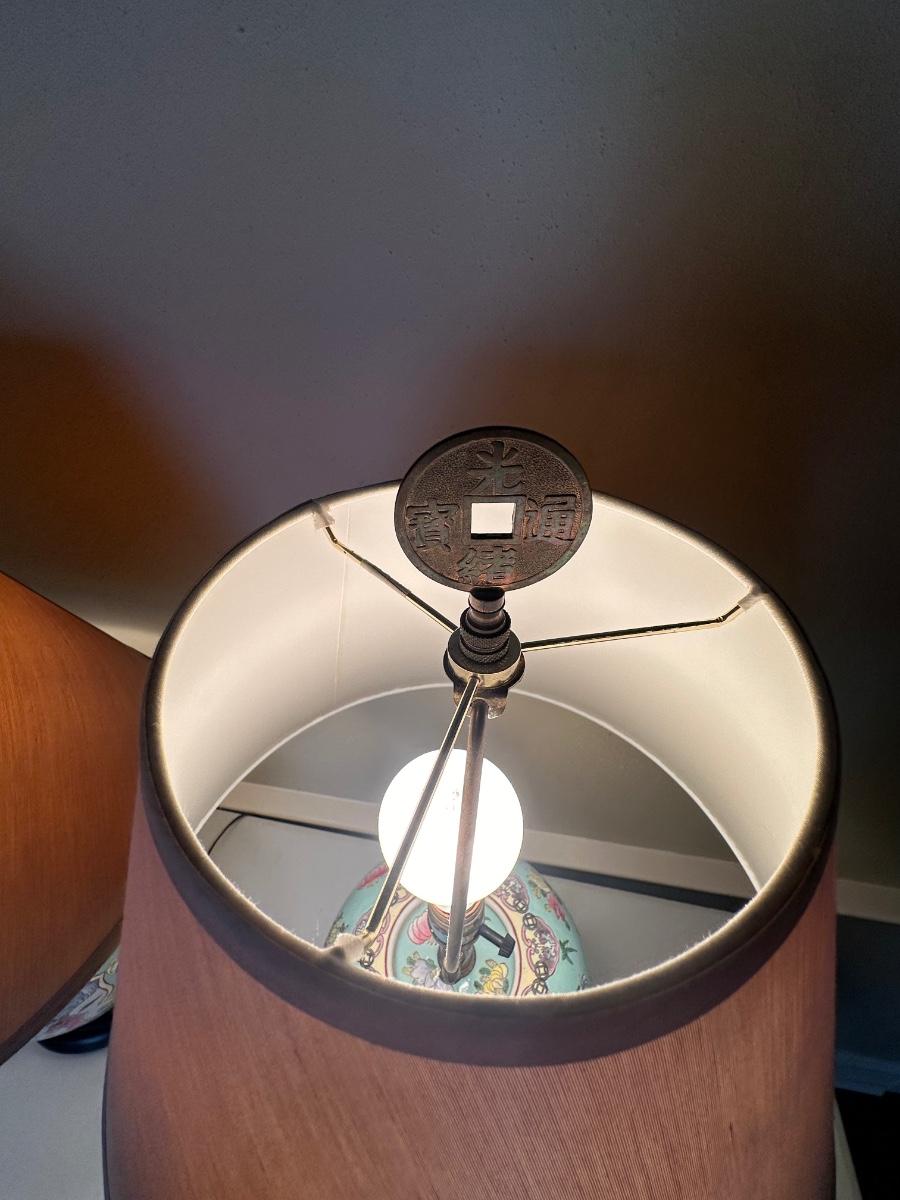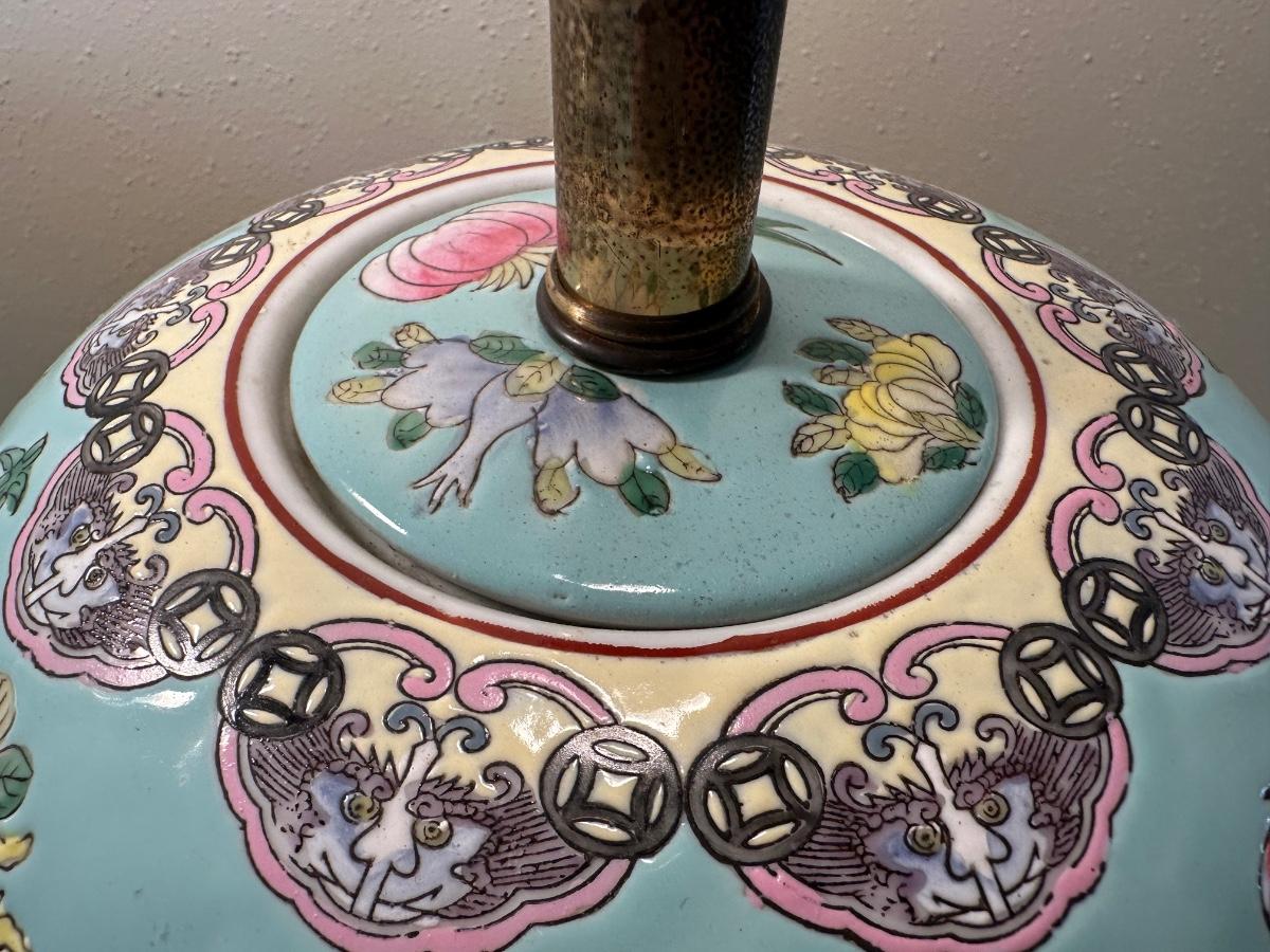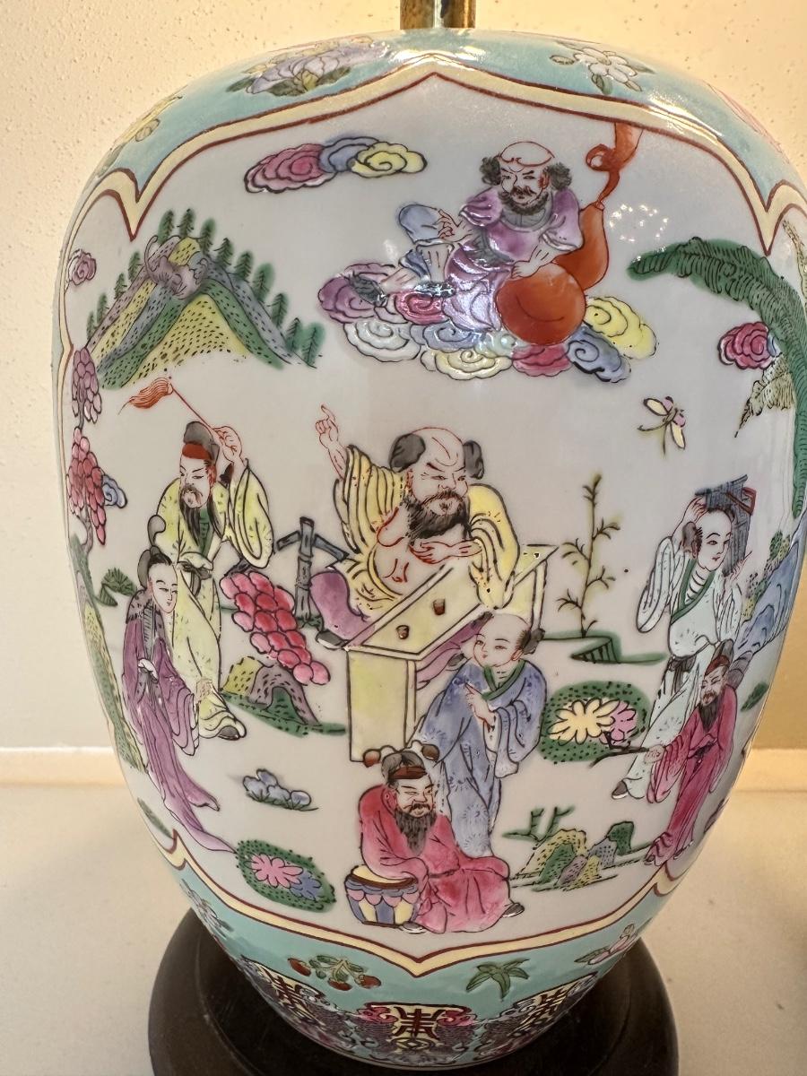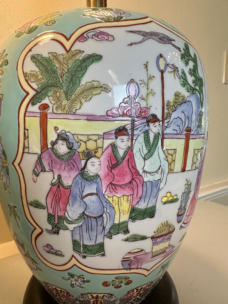 Pair of Ginger Jar Chinoiserie Style Table Lamps with Wood Base