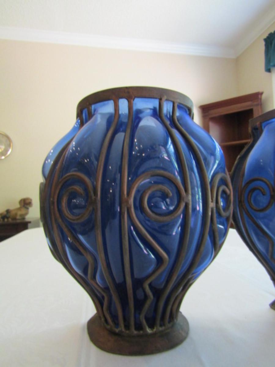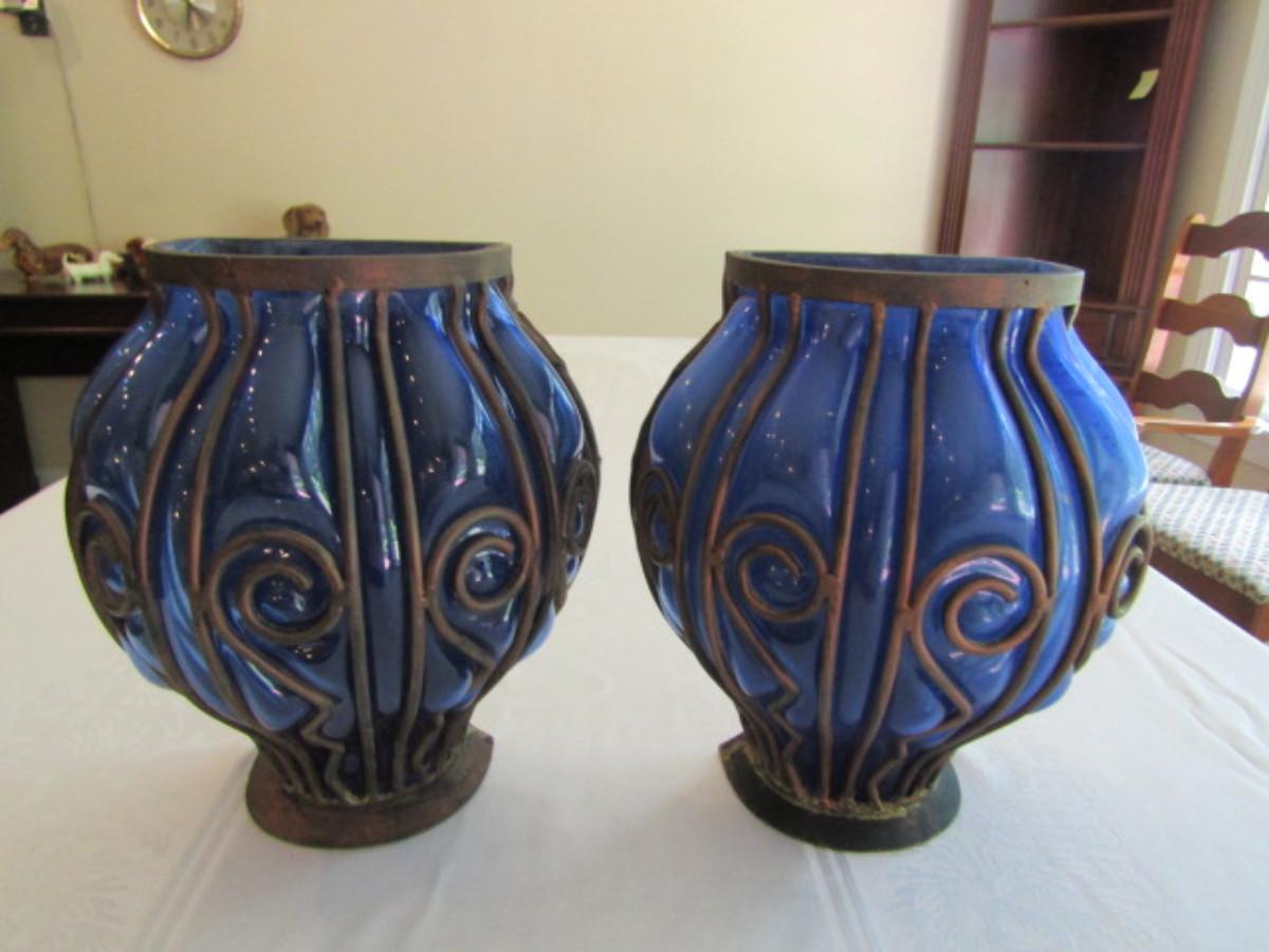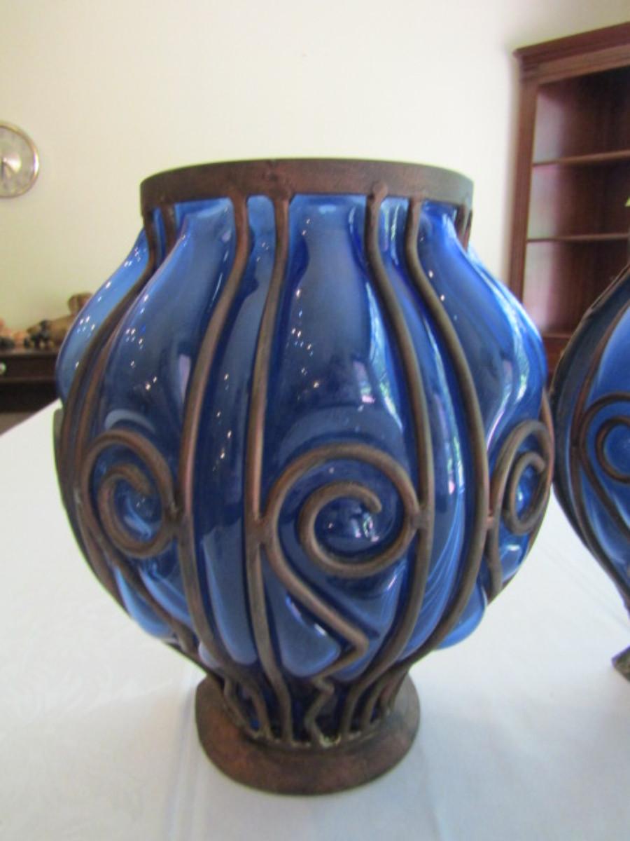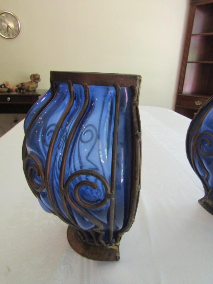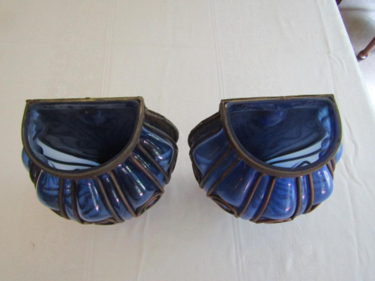 Pair of Glass and Metal Wall Pockets- Approx 10" Tall