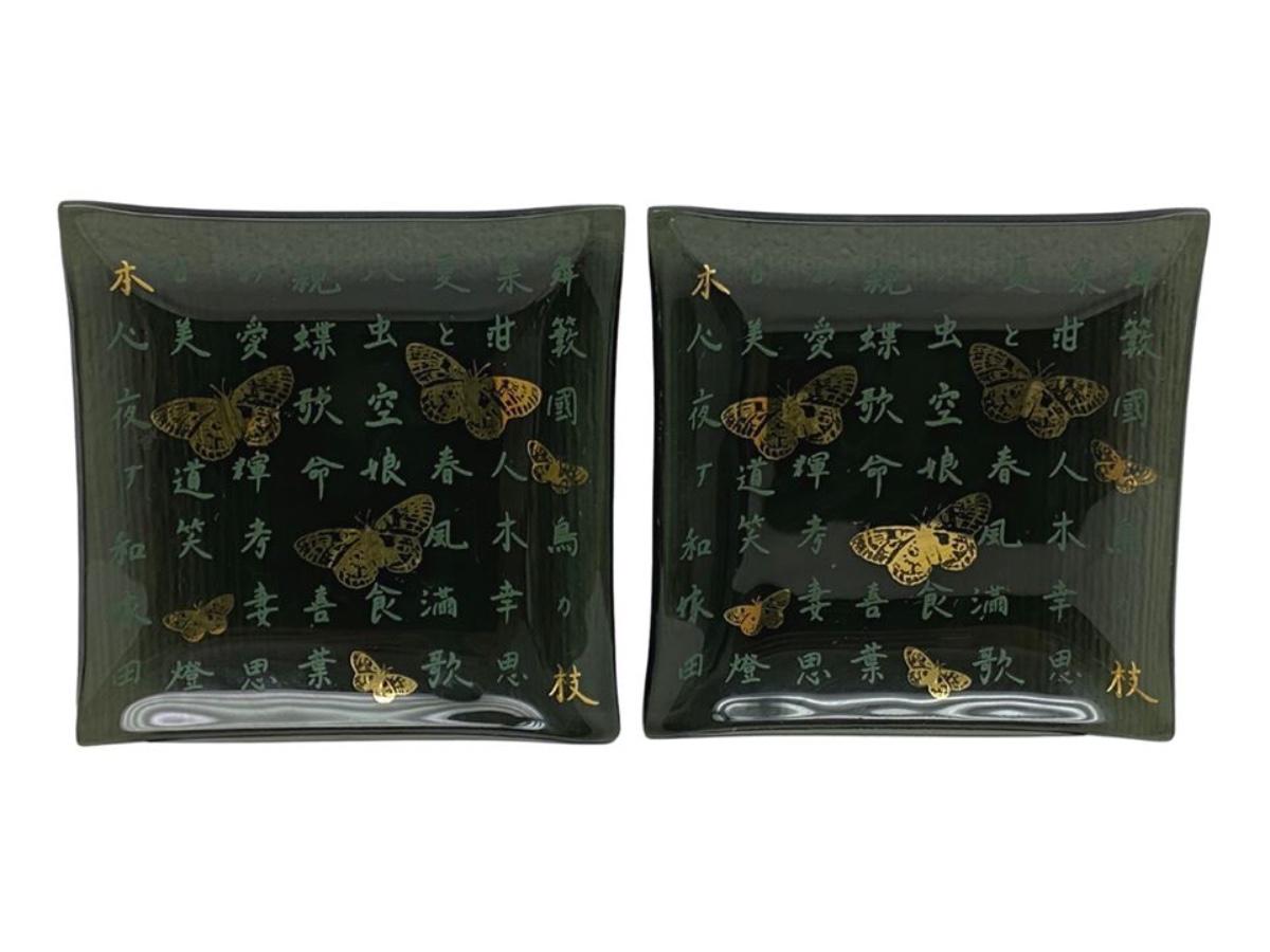 Pair of Glass Butterfly Motif Trinket Dishes