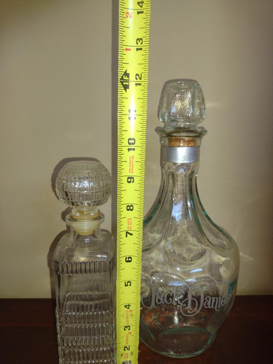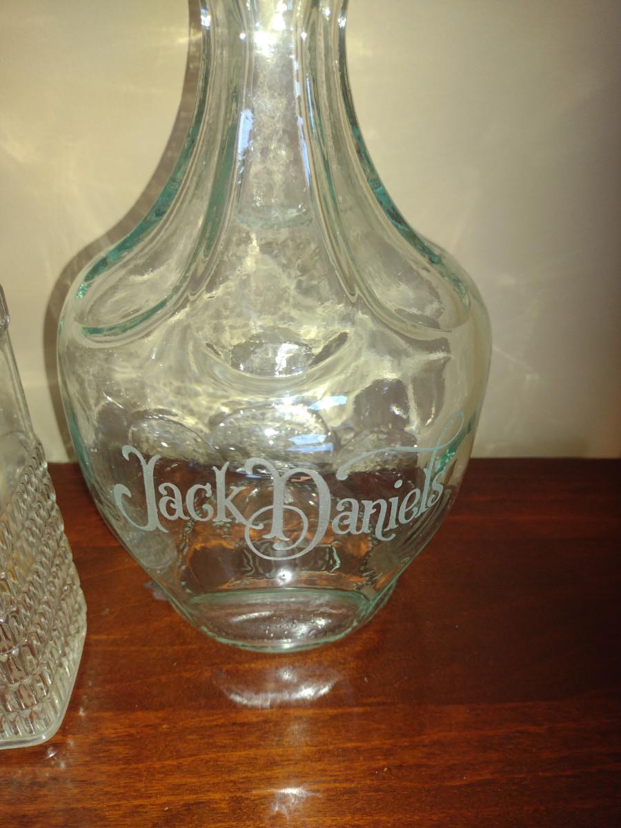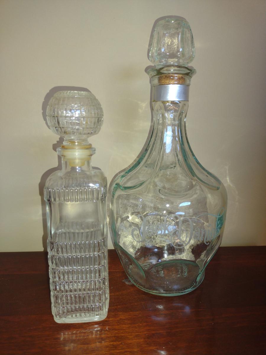 Pair of Glass Decanters with Stoppers- One Jack Daniels