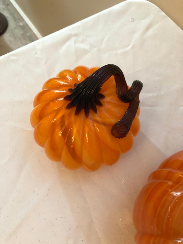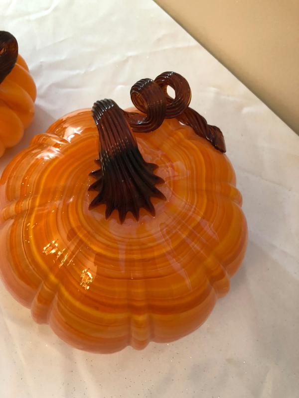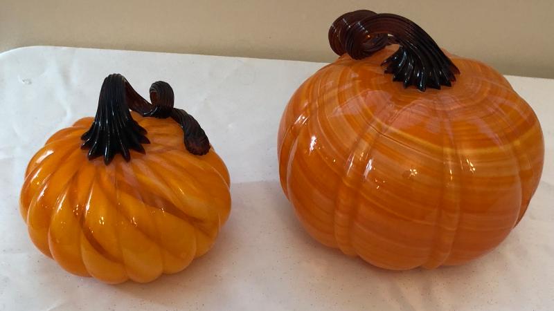 Hand blown glass pumpkins 7" and 5".
