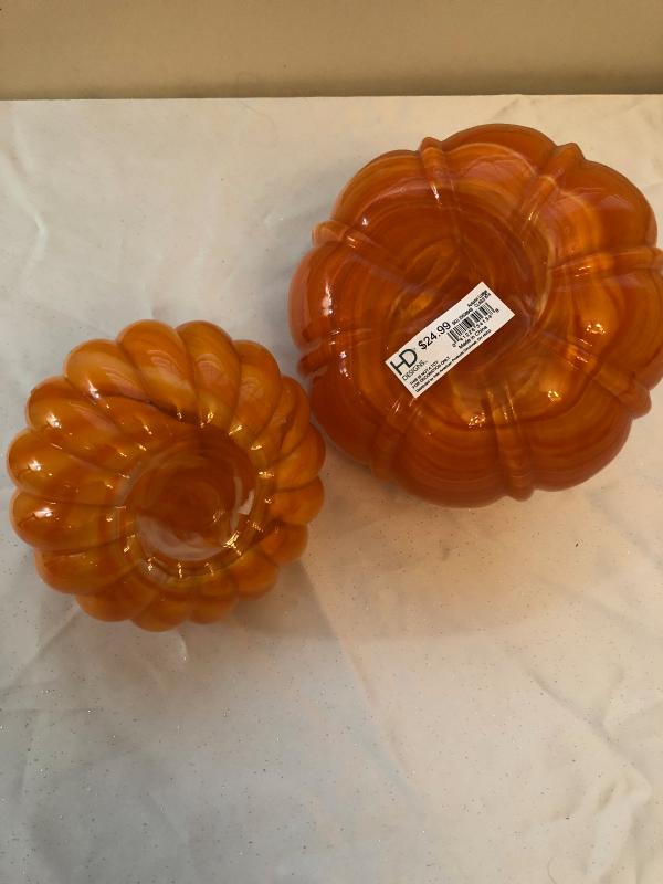 Pair of Glass Decorative Pumpkins Halloween/Fall/Thanksgiving