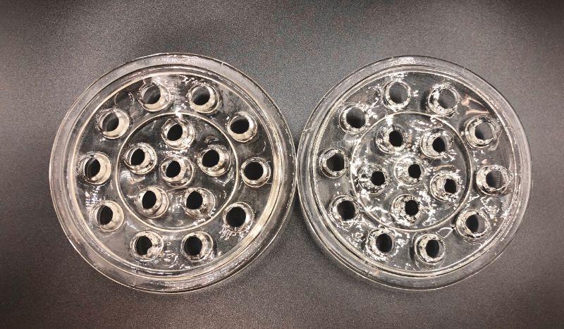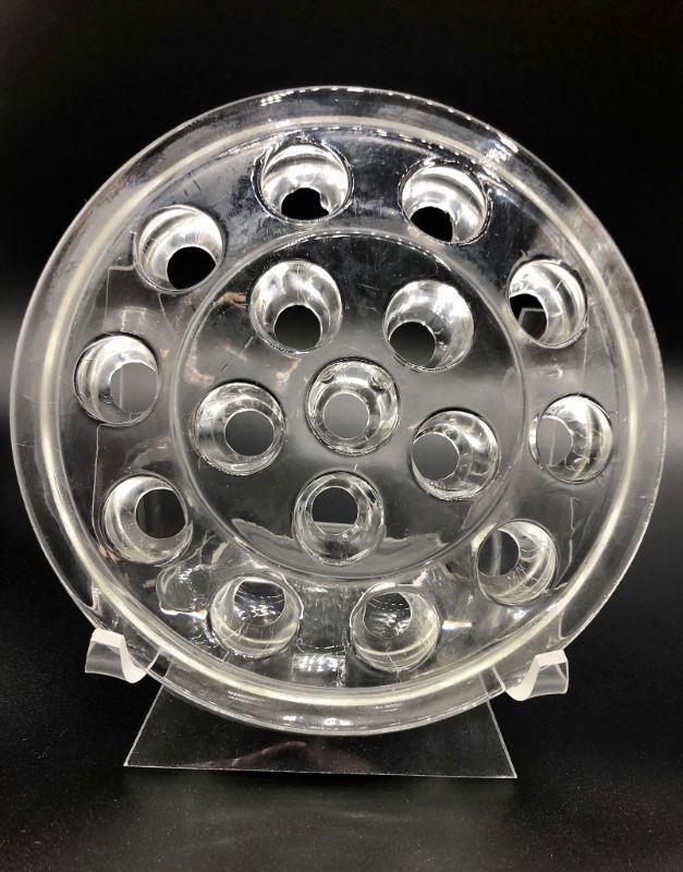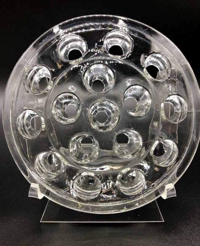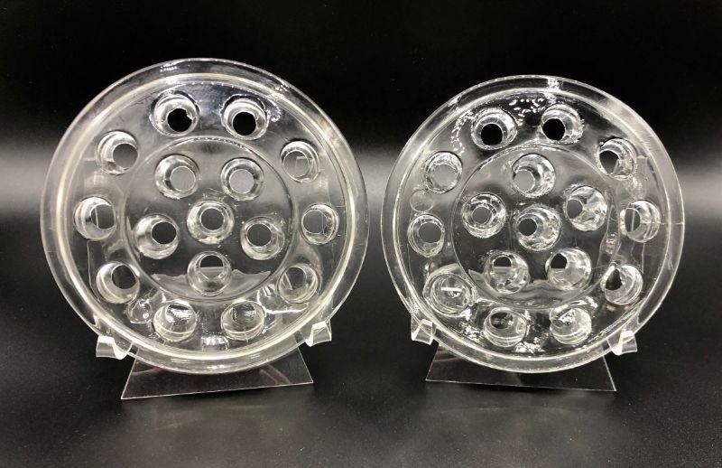 Pair of Glass Floral Frogs, vintage flower arranging tool sits in bottom of display piece