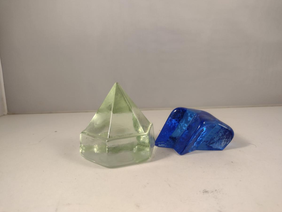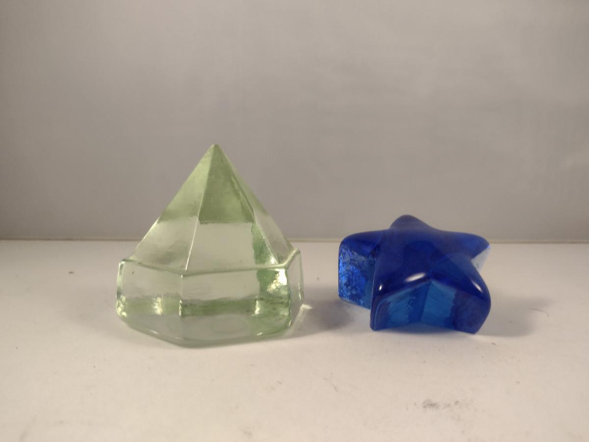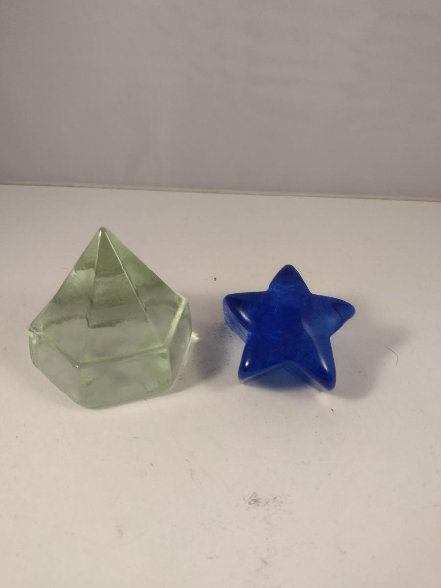 Pair of Glass Paperweights- Star and Diamond Shaped Deck Prism Light