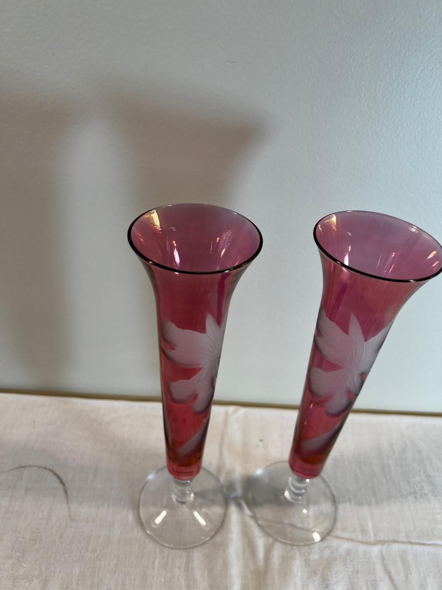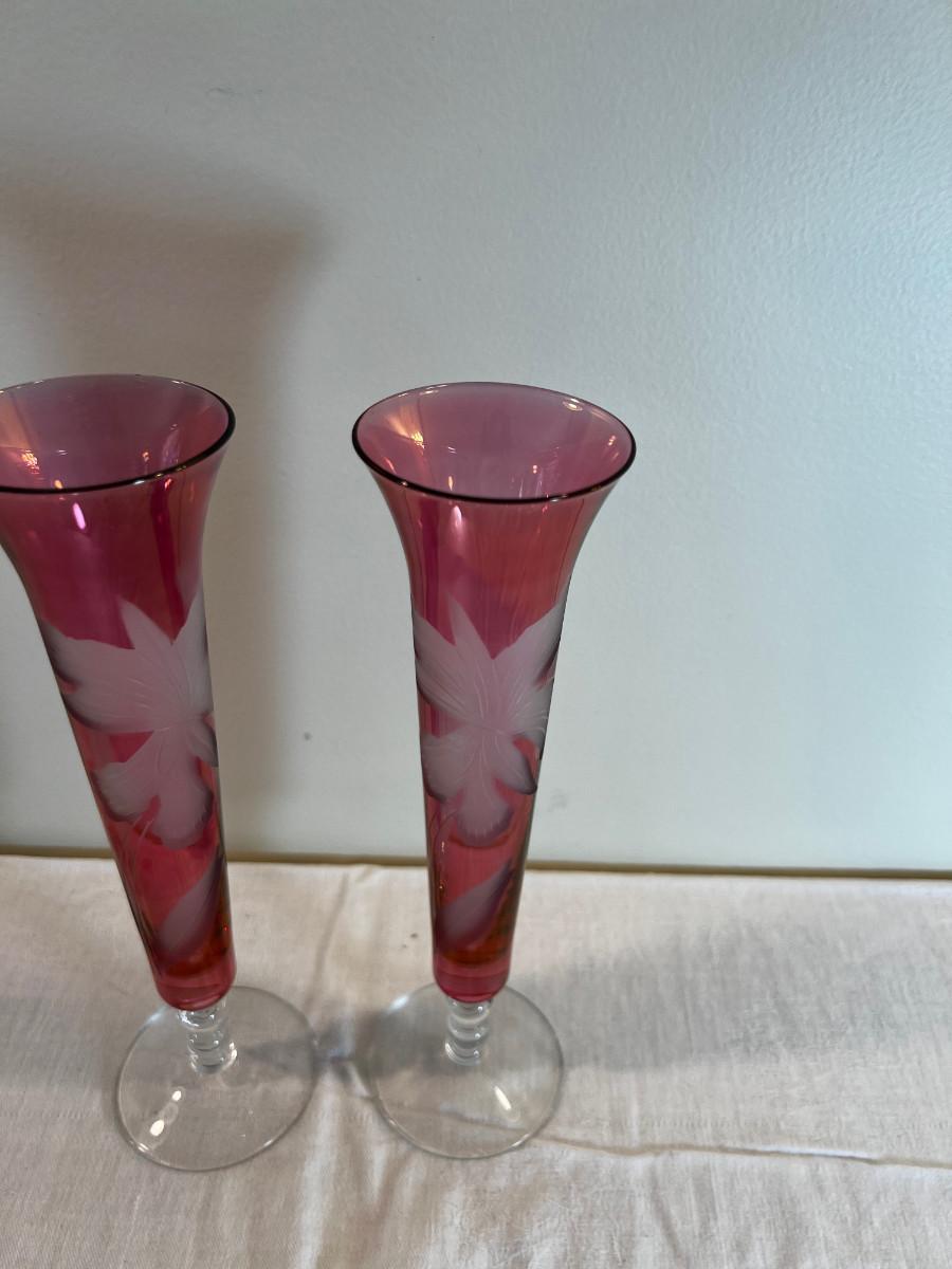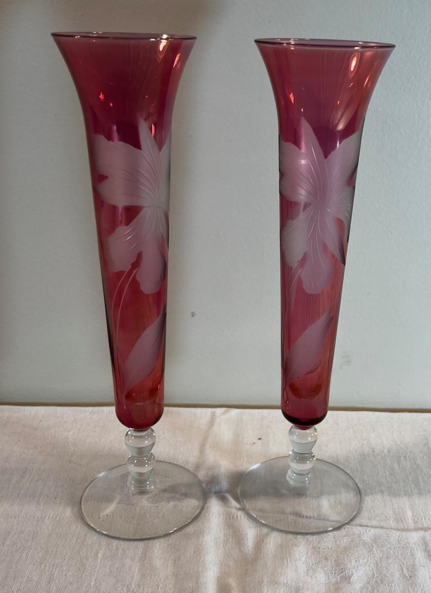 10" Tall Pretty! Lily etching!. (2) Matching.