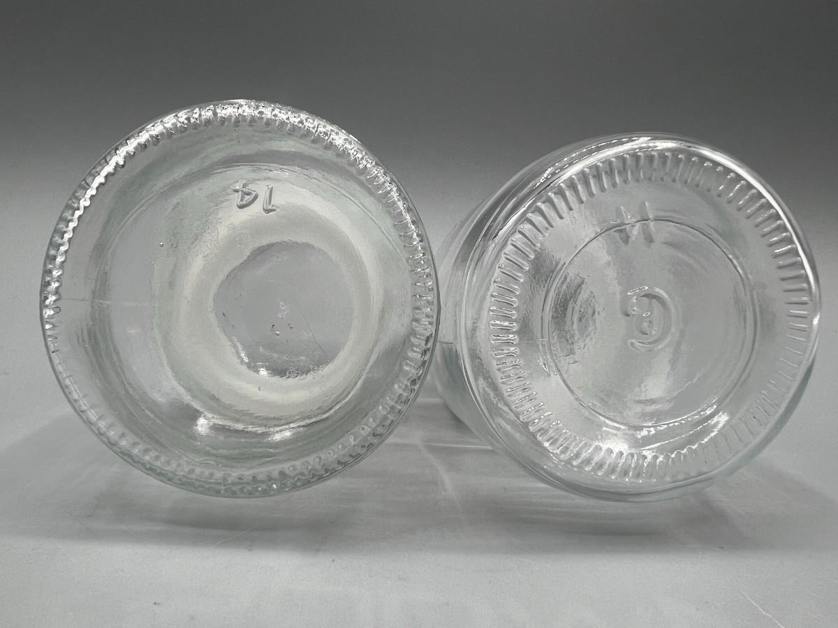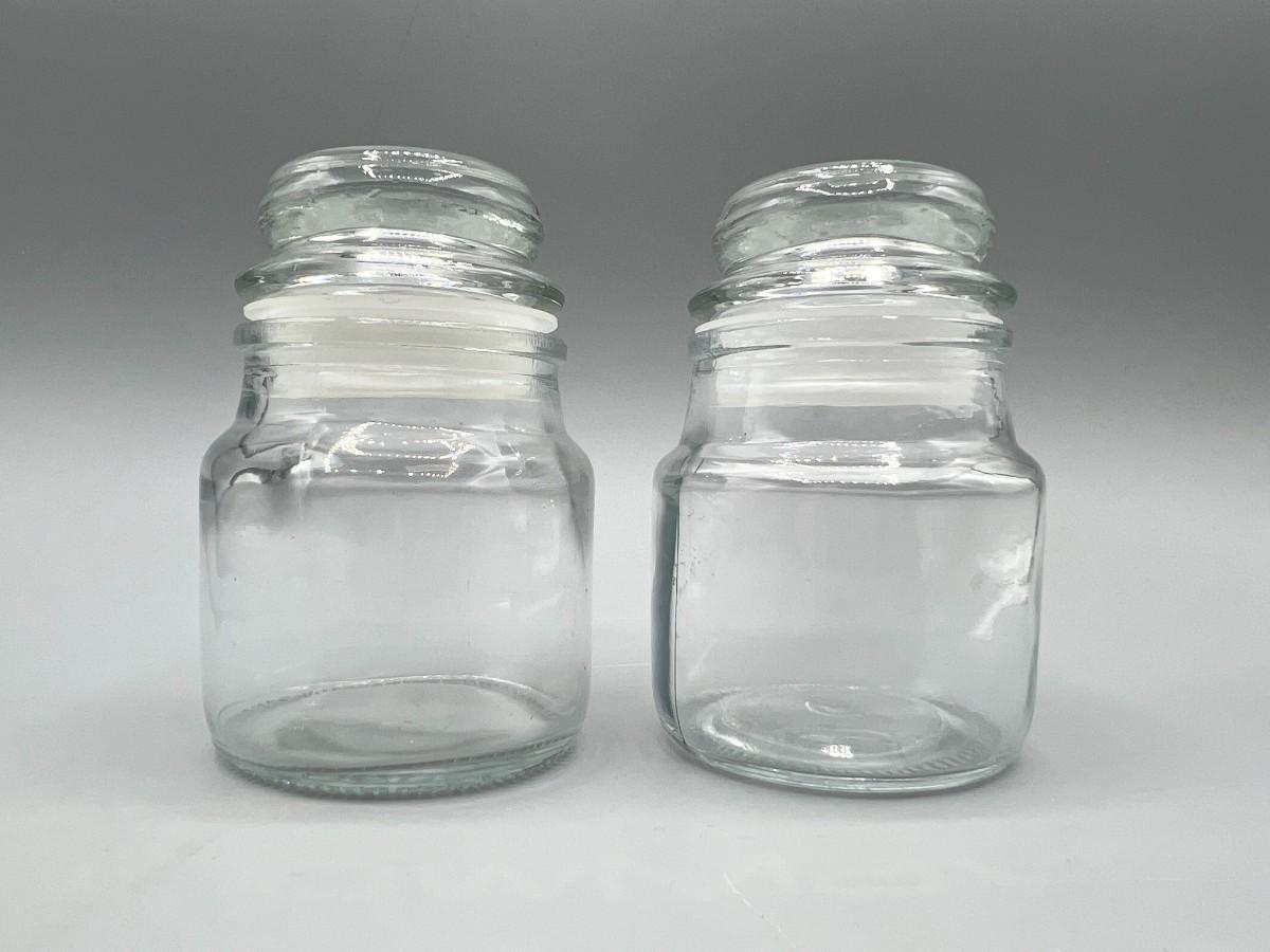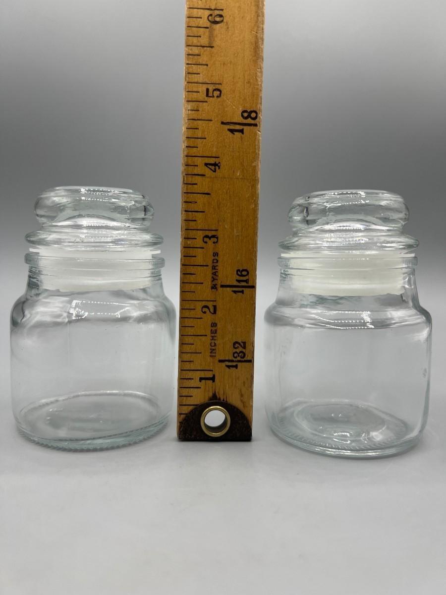 Pair of Glass Storage Kitchen Ingredient Containers, there are no signifncant cracks or chips to the glass and is in good useable condition. Check pictures for more details and for sizing.