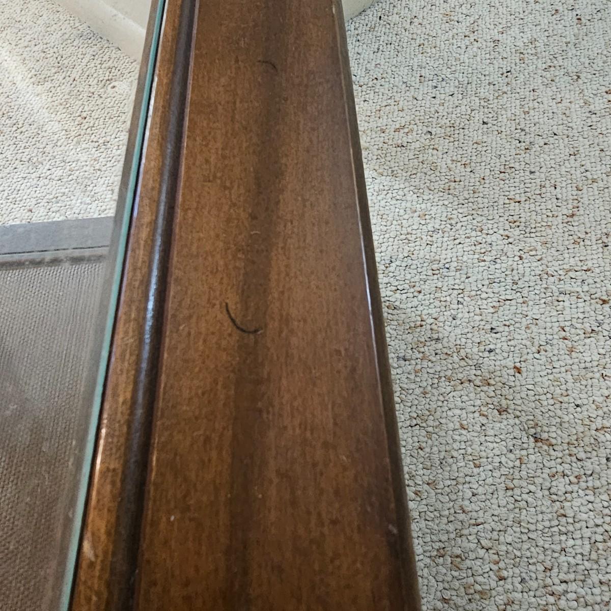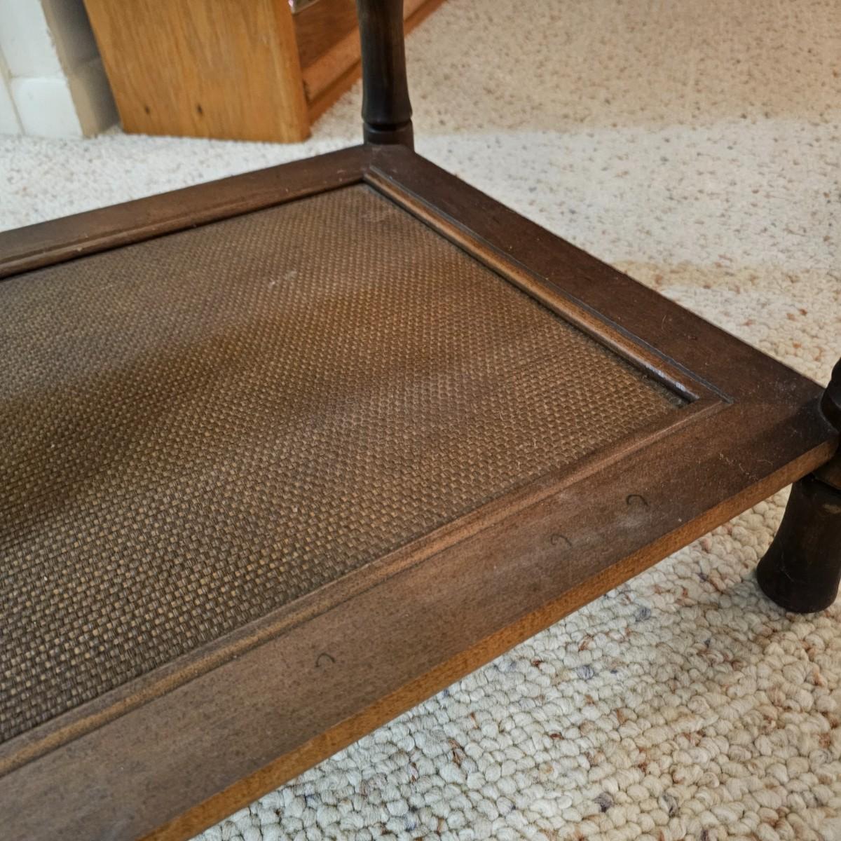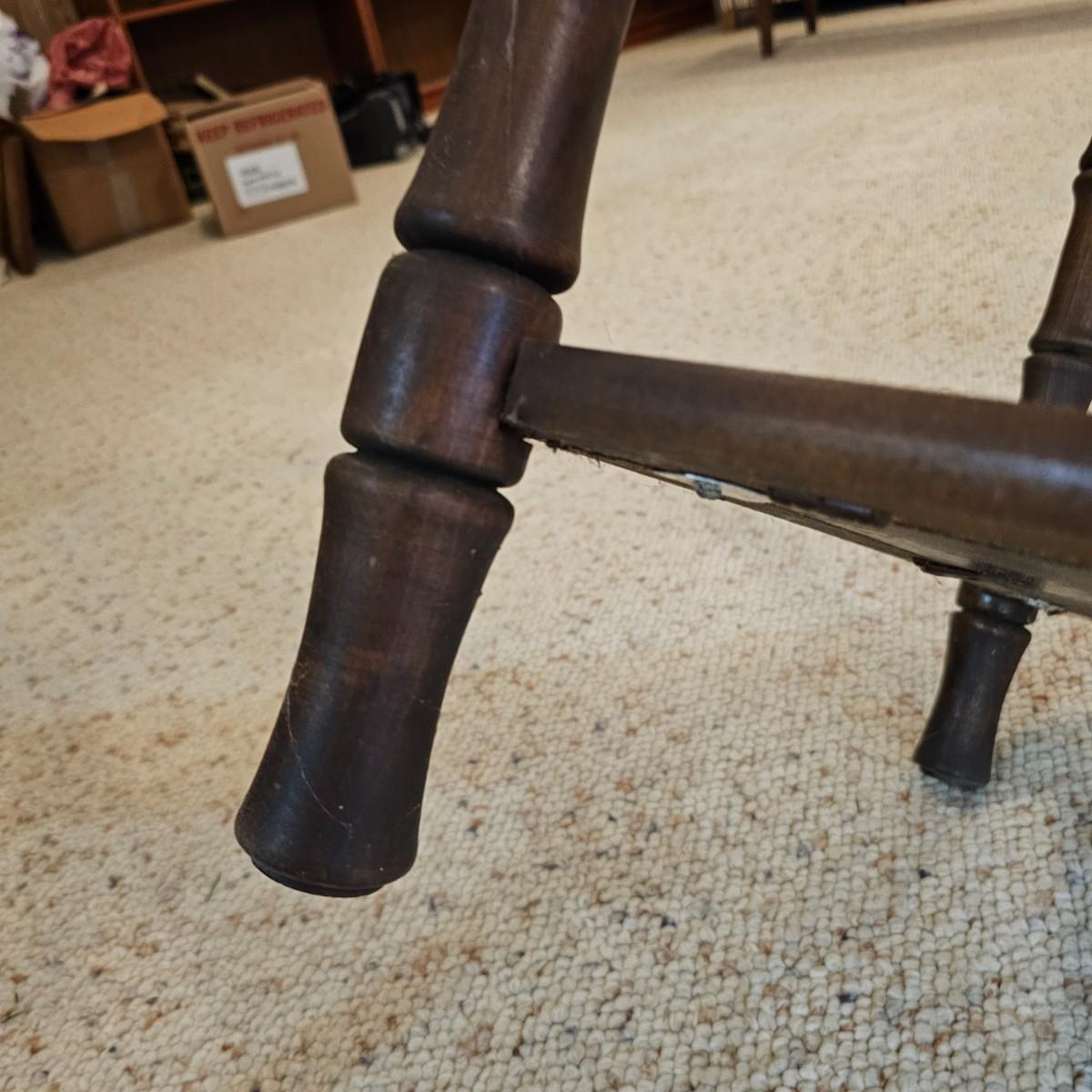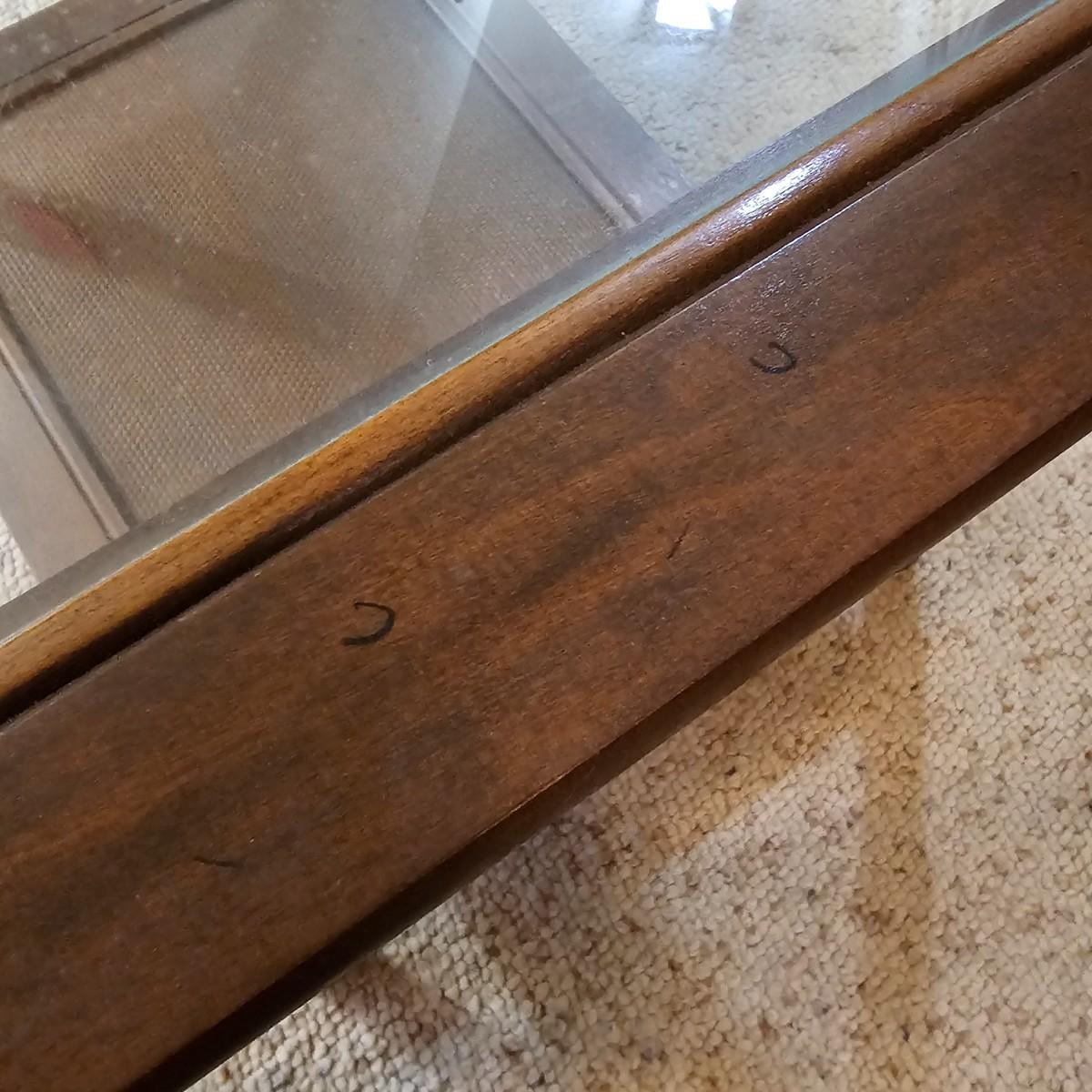 Two glass top end tables with lower shelves. Glass inserts and turned spindle legs. Some minor blemishes on top edges, see photos for examples. Local pickup only.