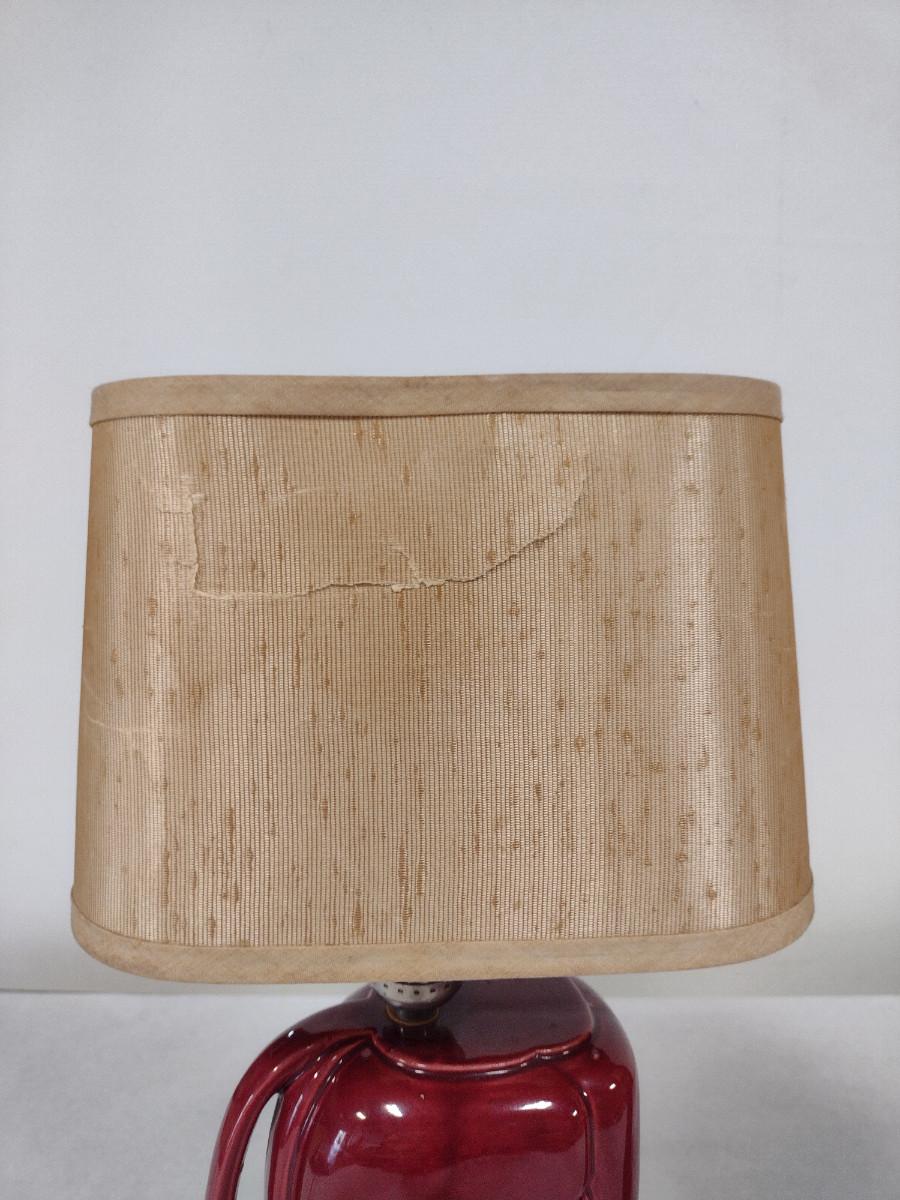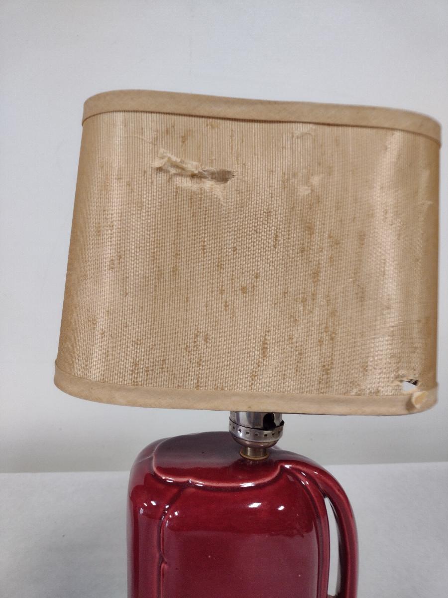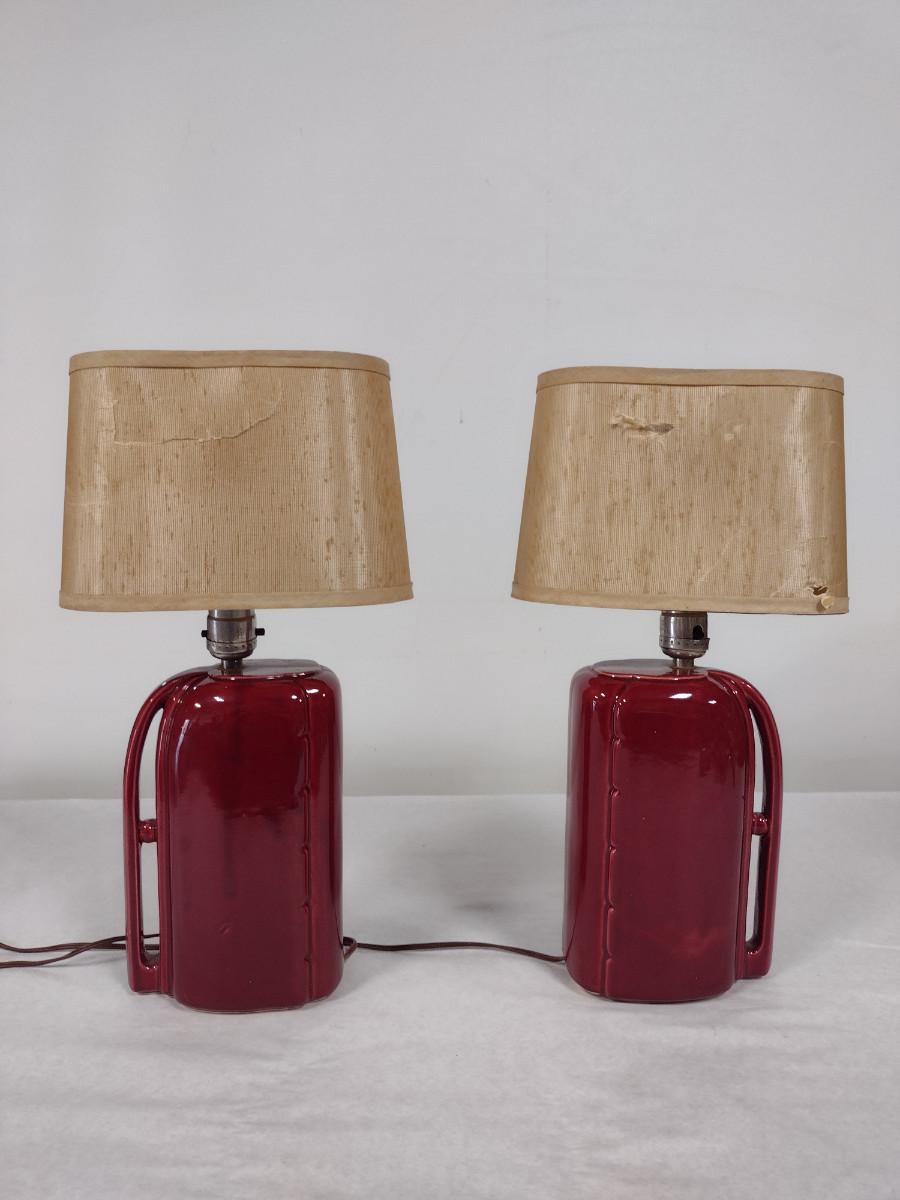 Pair of Glazed Ceramic Lamps with Shades. Shades are damaged.