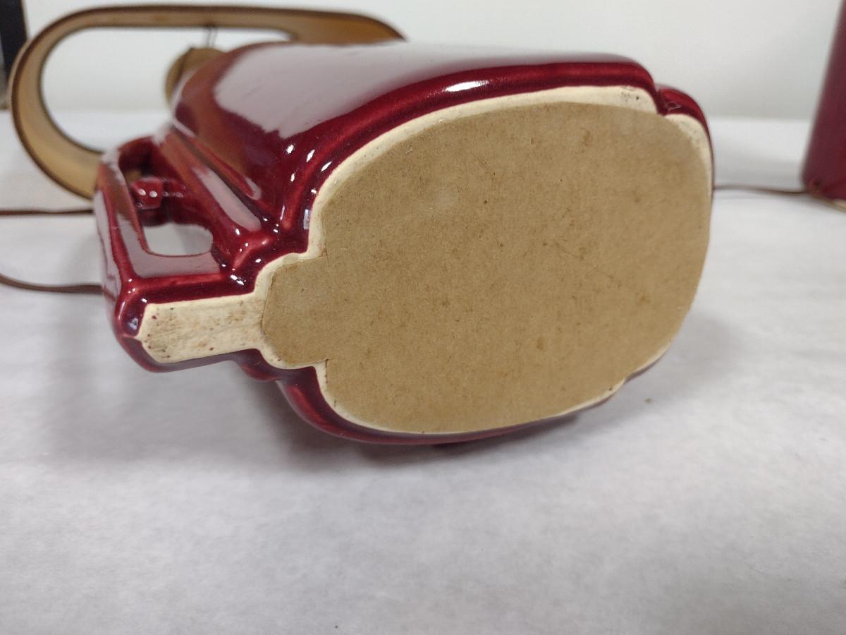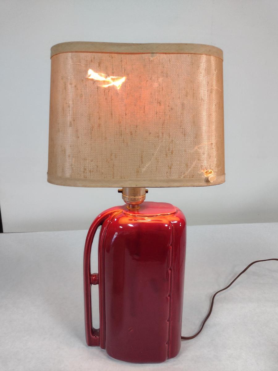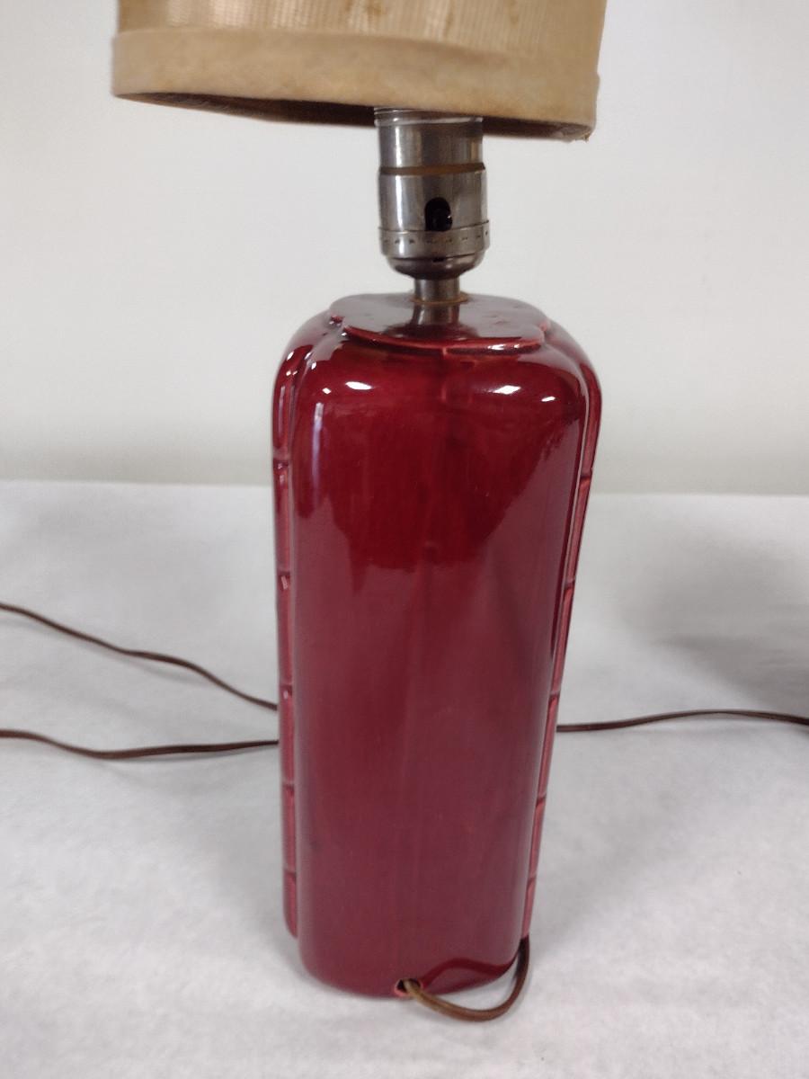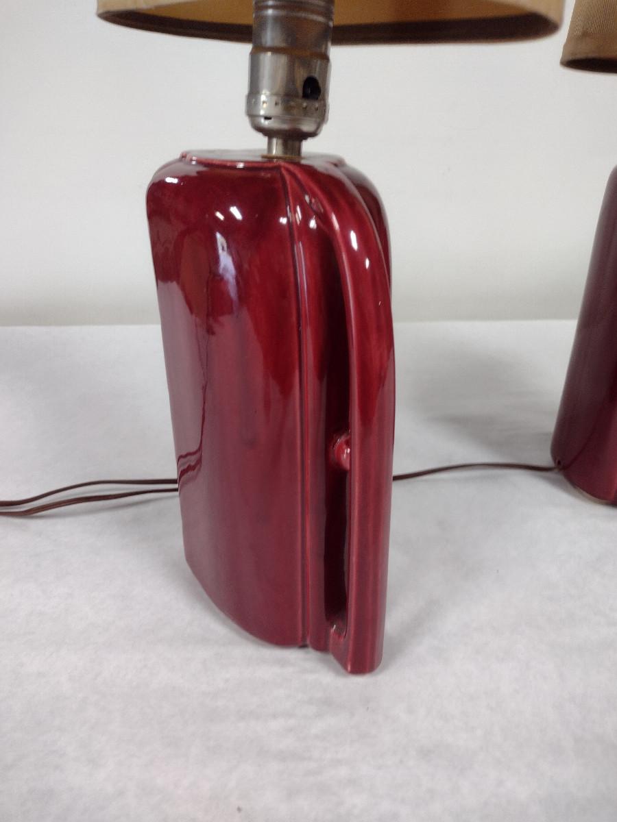 Pair of Glazed Ceramic Lamps with Shades. Shades are damaged.