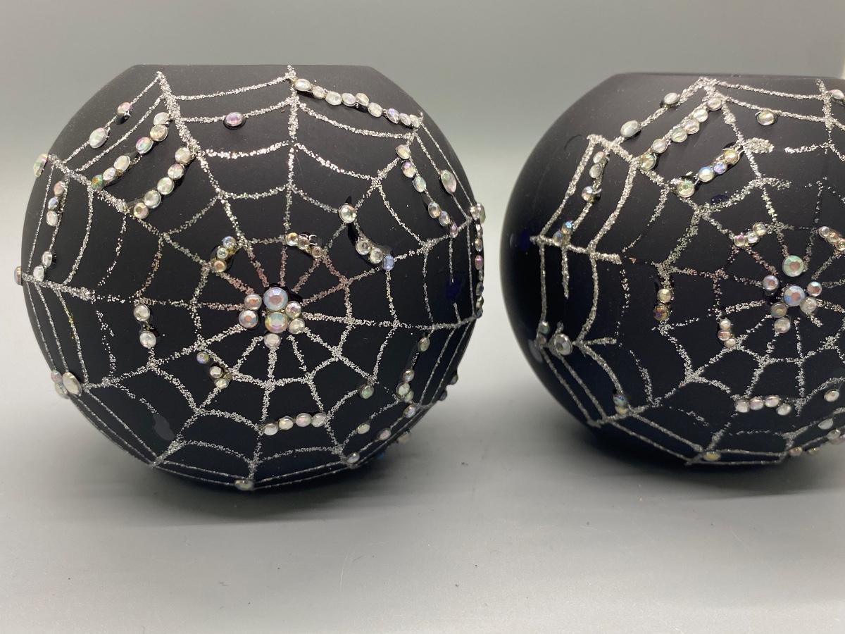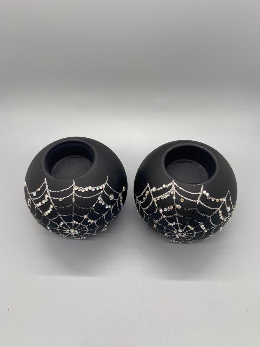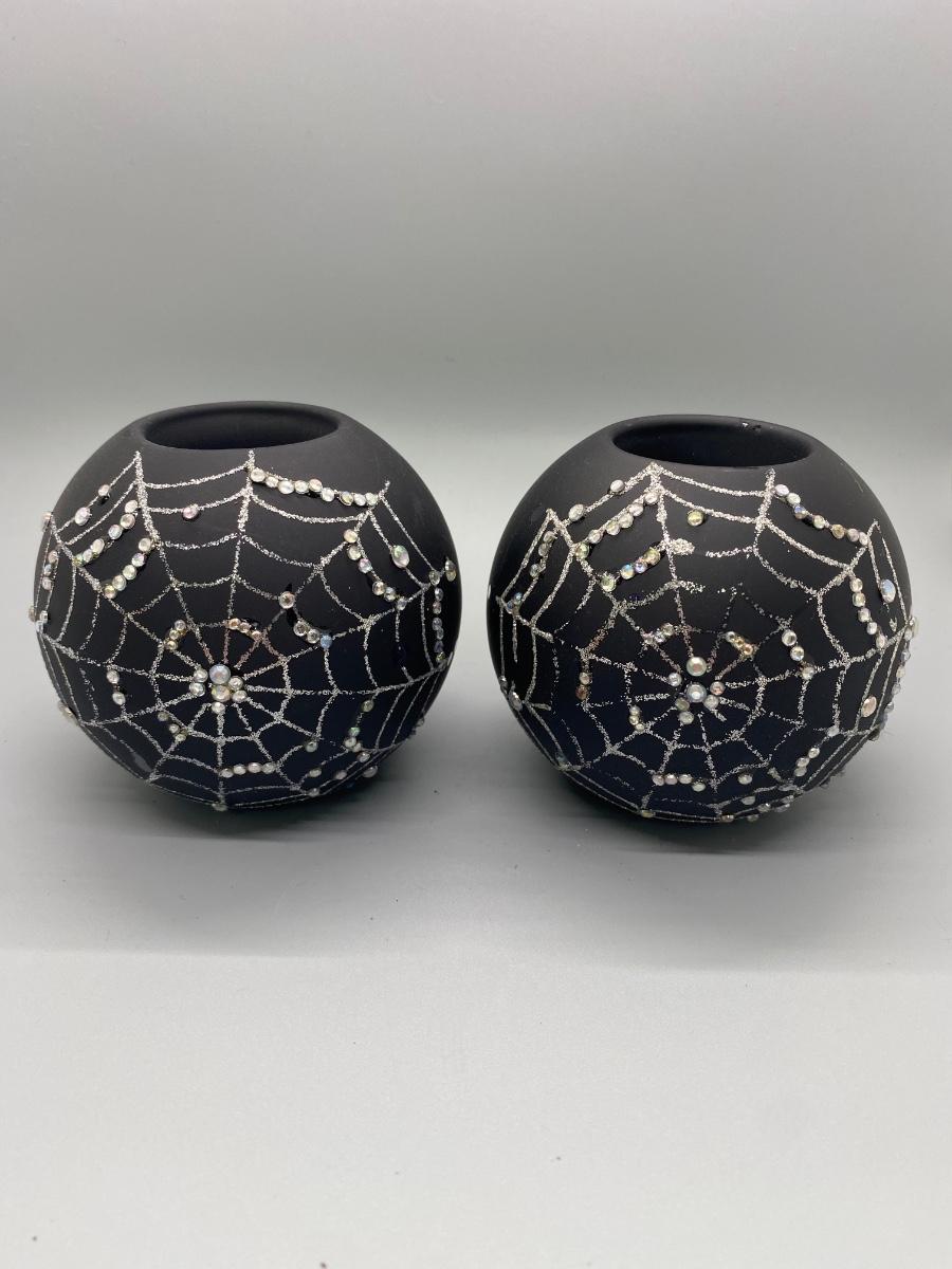 Pair of Glittery Spider Cobweb Black Candleholders