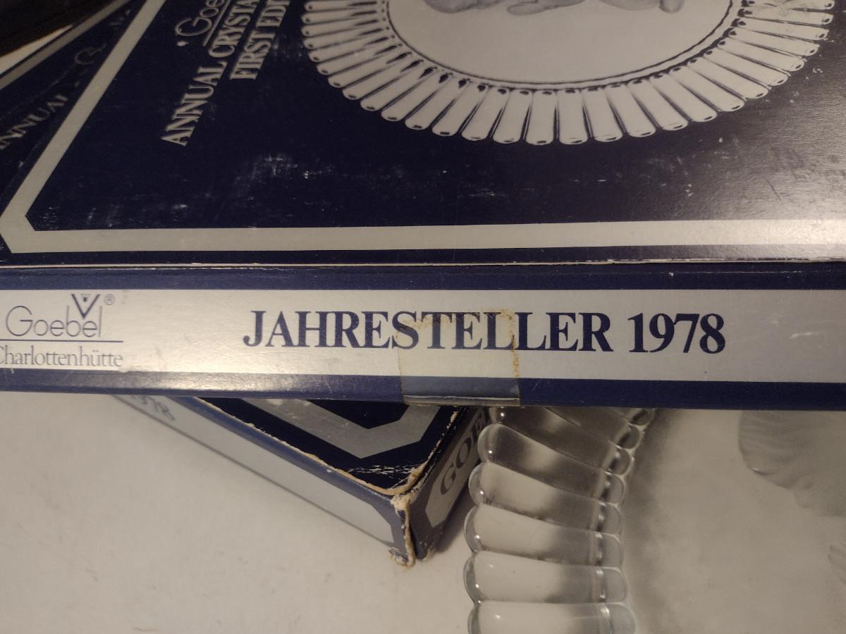 Pair of Goebel Annual Crystal Glass Plate 1978. Items come with original boxes.