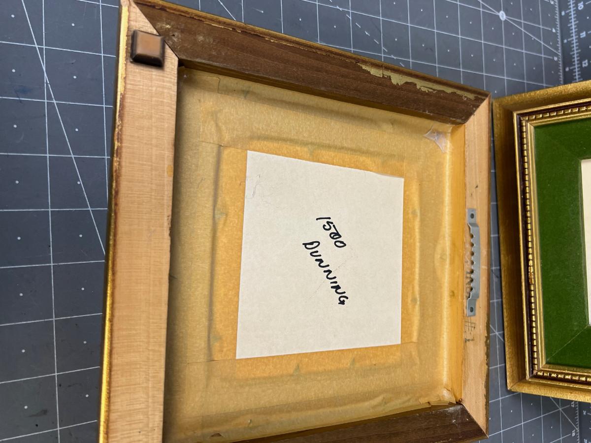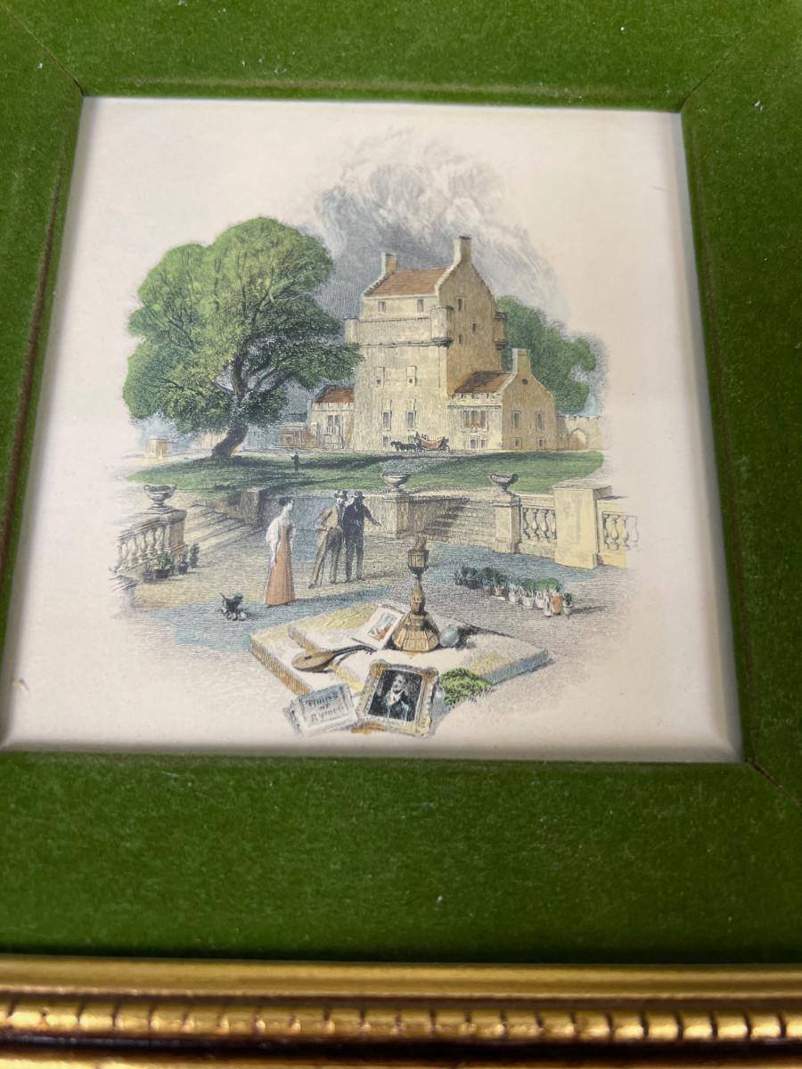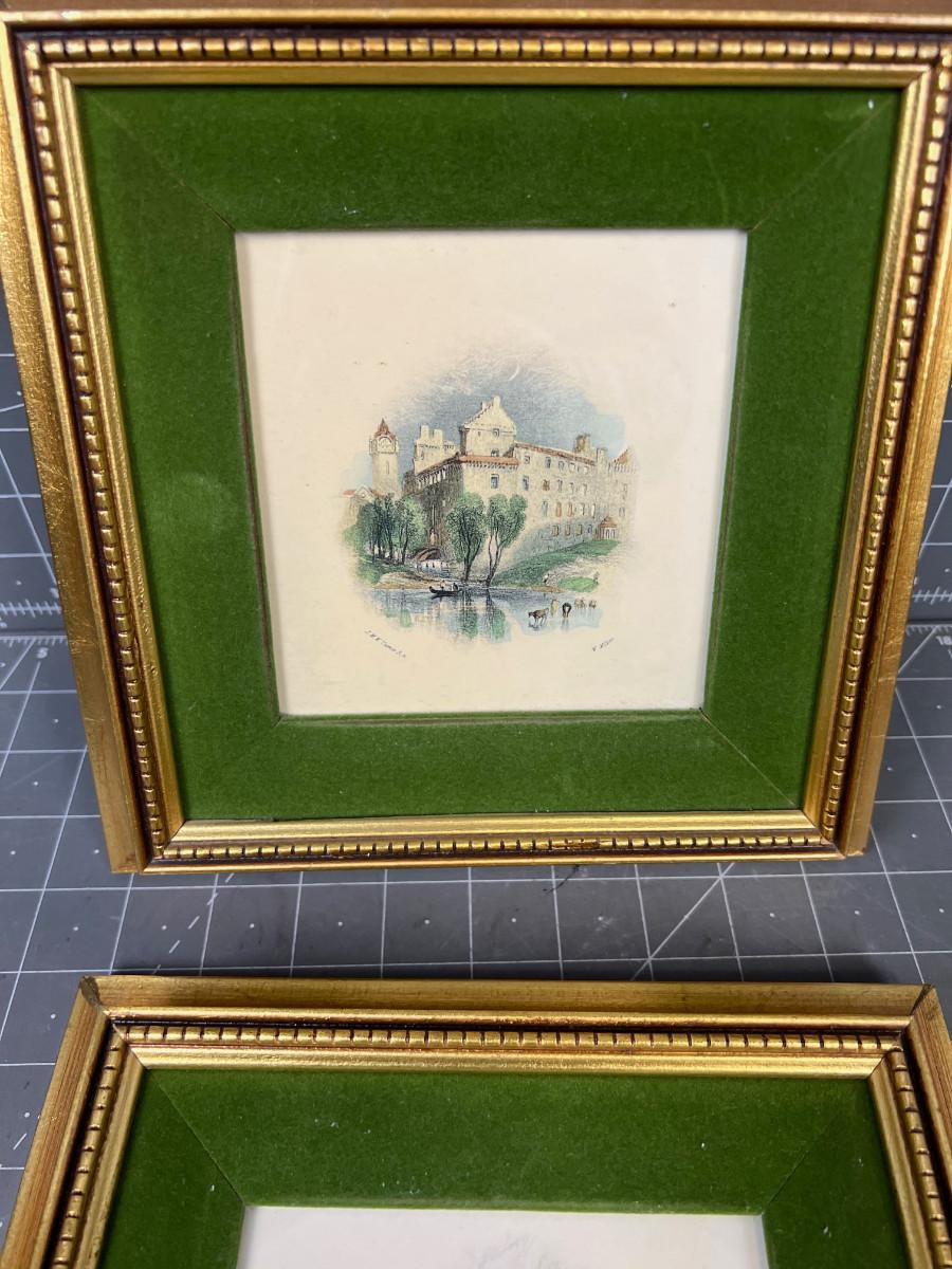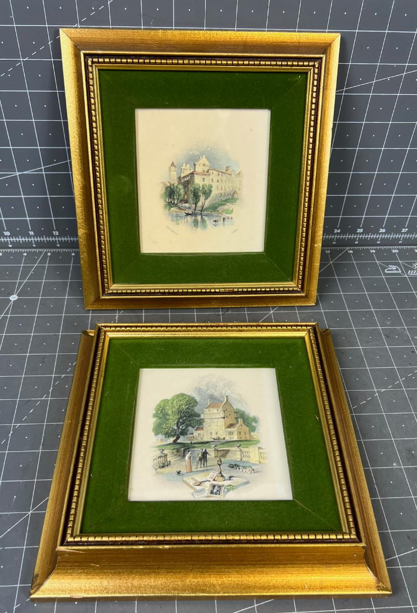 Pair of Gold Framed Matted Pictures of Buildings.