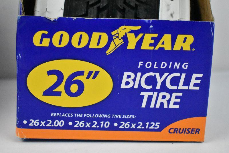 Pair of Goodyear 26" White Wall Folding Cruiser Bike Tires, Black - New