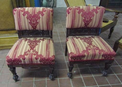 Pair of Gothic Style Upholstered Parlor Chairs LOC