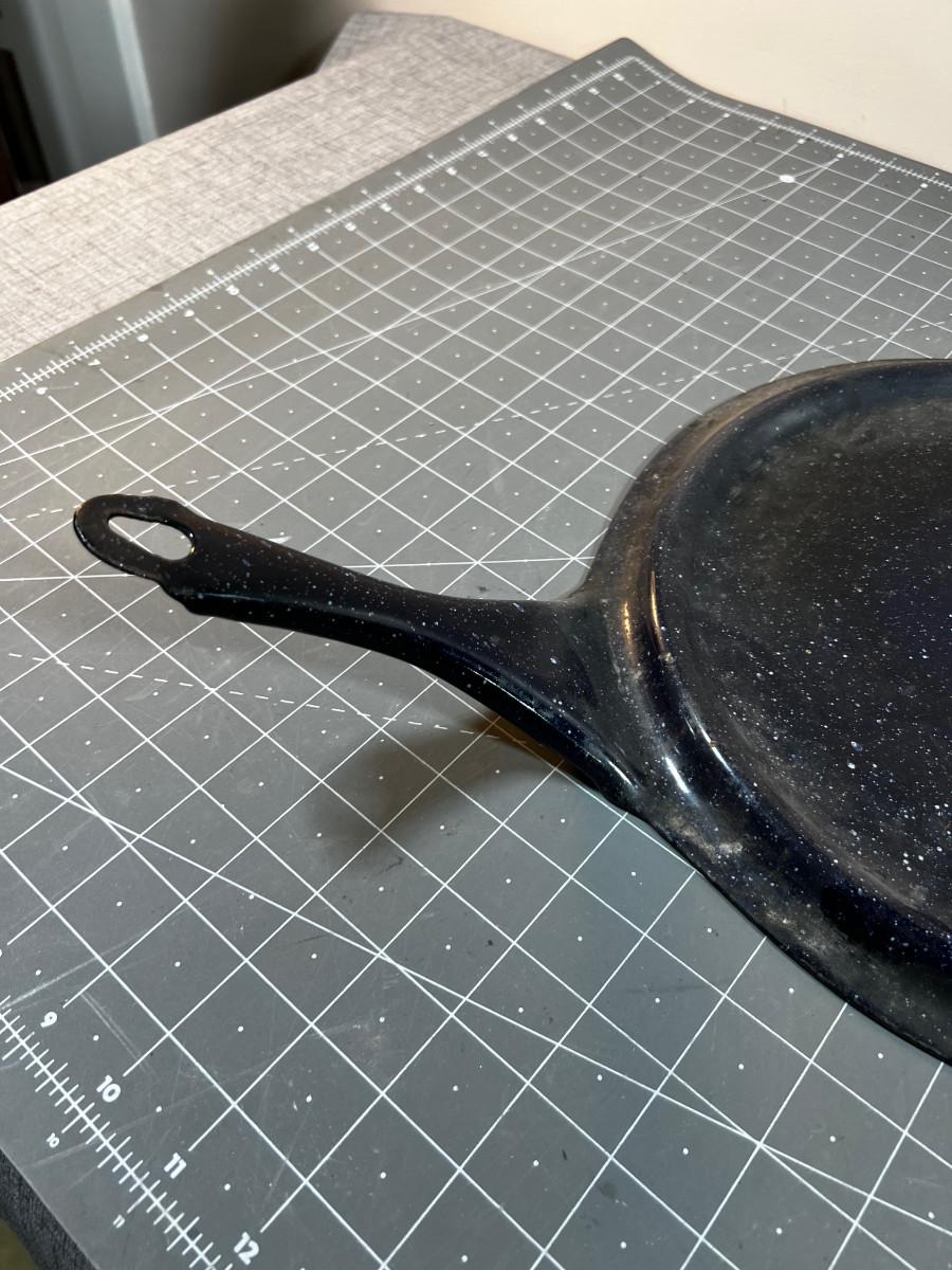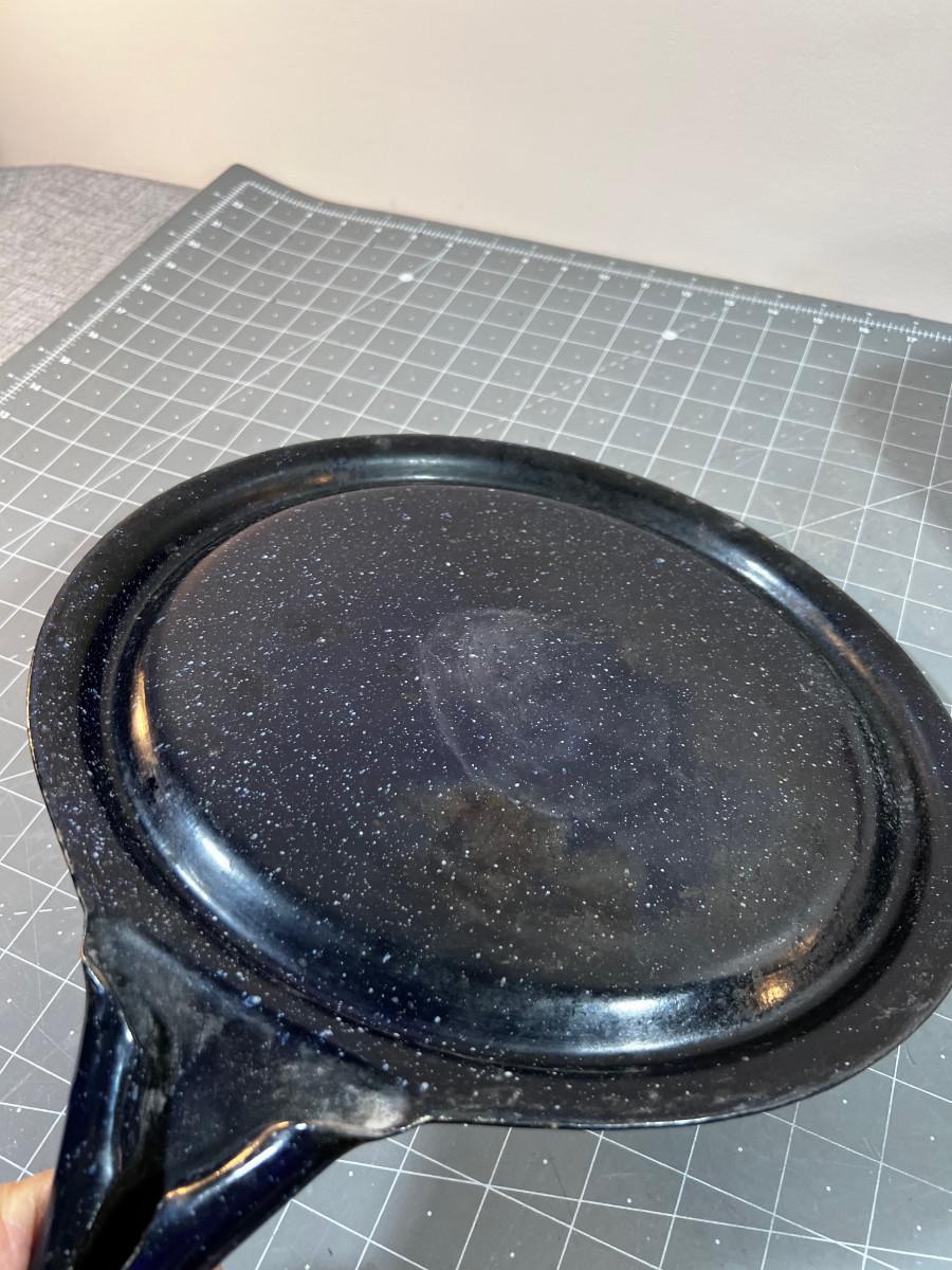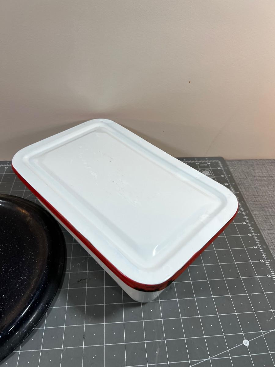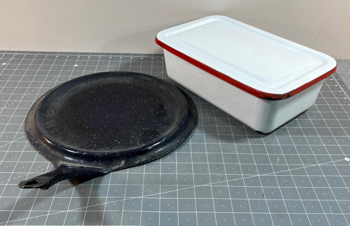 Pair of Graniteware Pieces 2 White Box and Blue Skillet