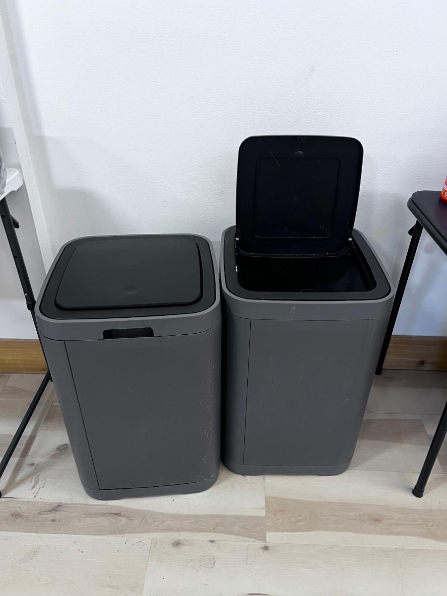 Pair of Gray and Black IKEA Trash Cans