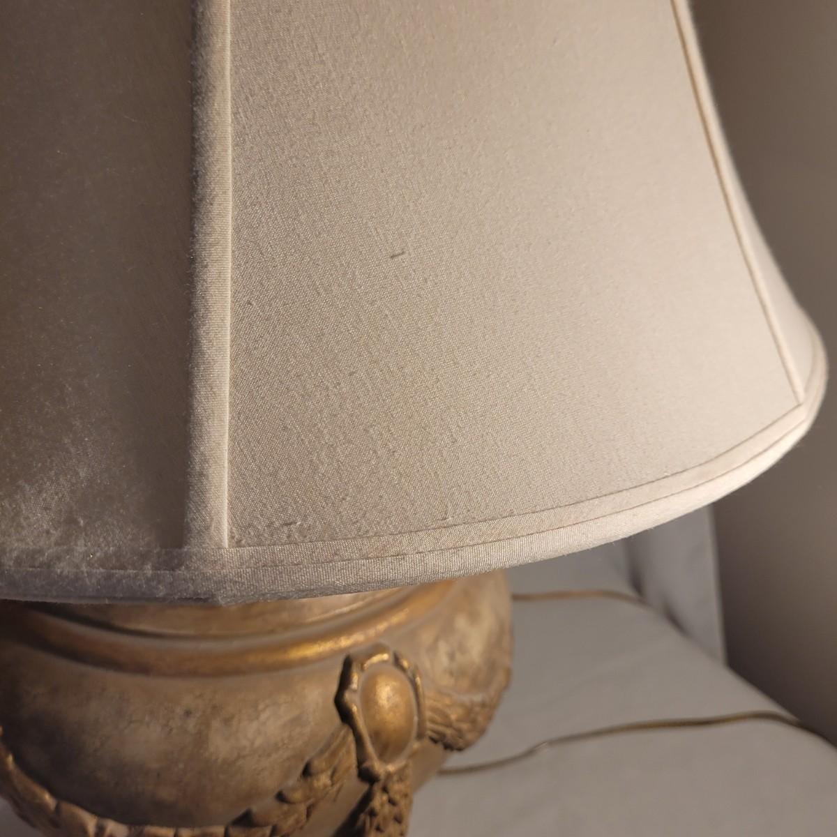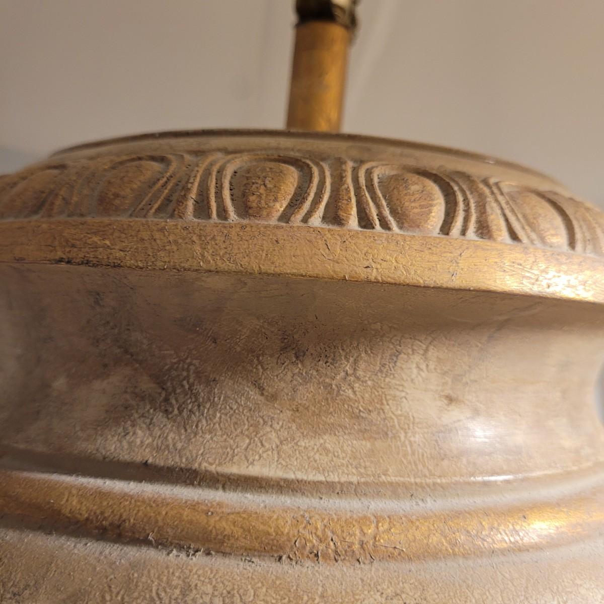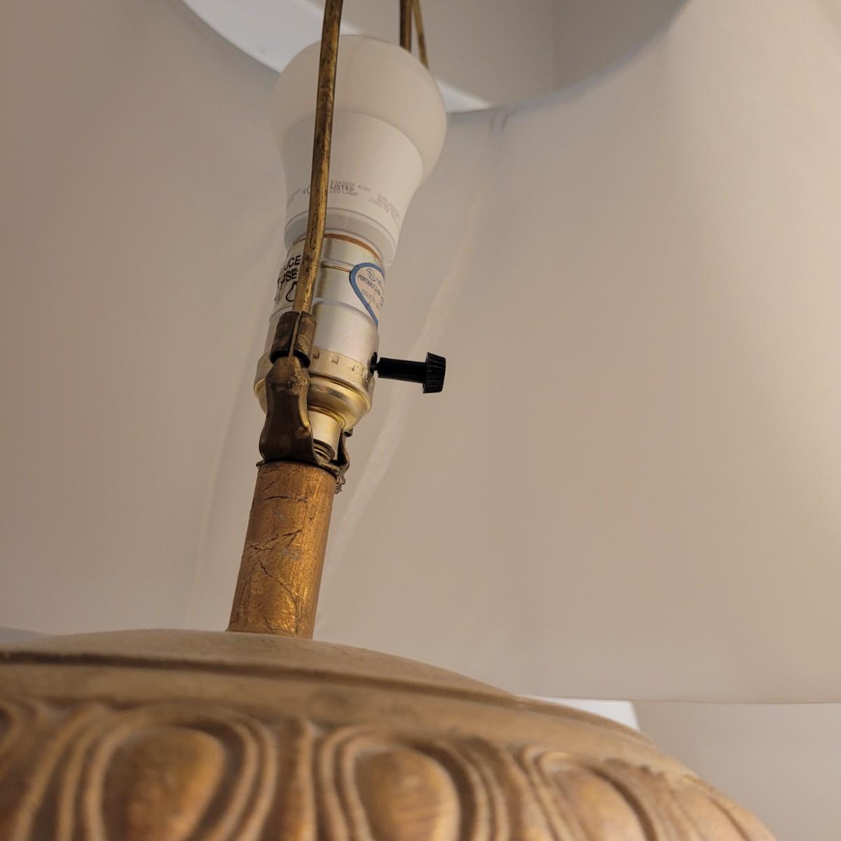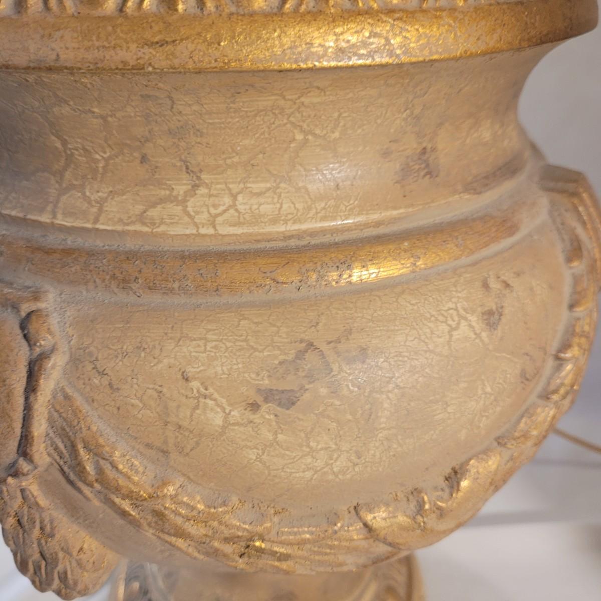 This pair of classic Greek style table lamps has a soft cream base with gold overlay. Lamps have on off switch and are made of resin.