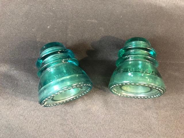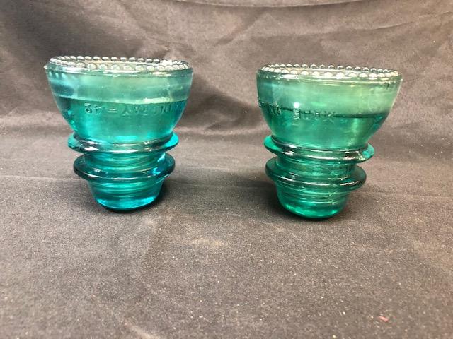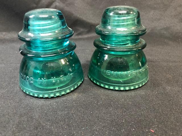 Pair of green Hemingray Glass Insulators. Good Condition.