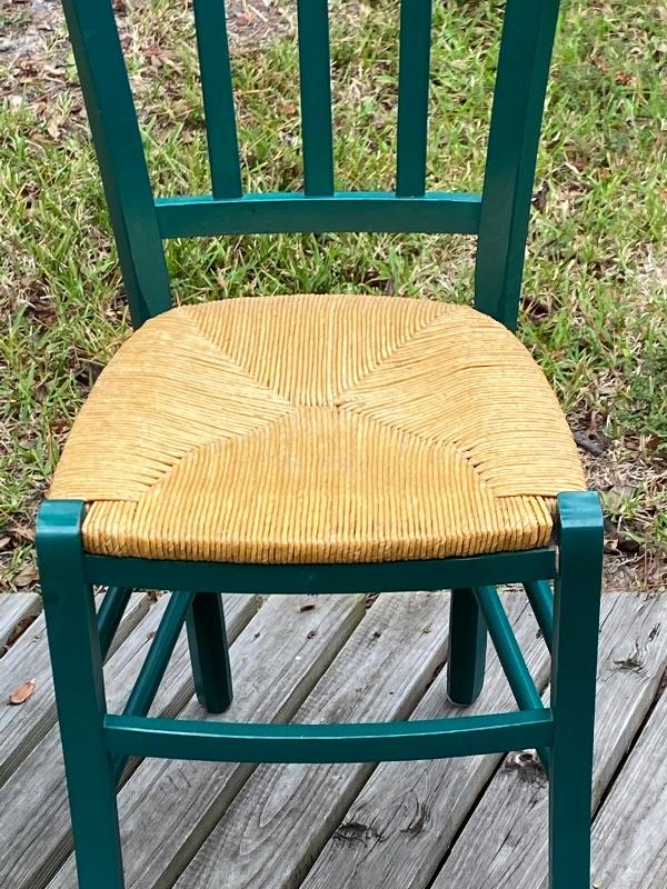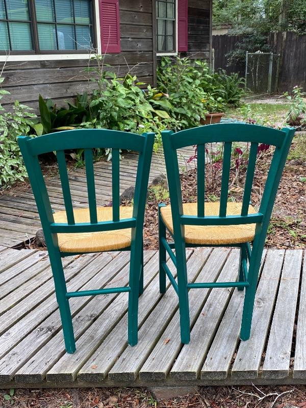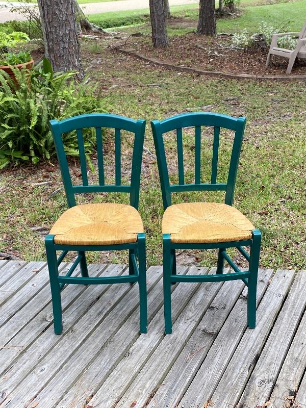 Pair of Hunter Green Wood Chairs with Rush Seats