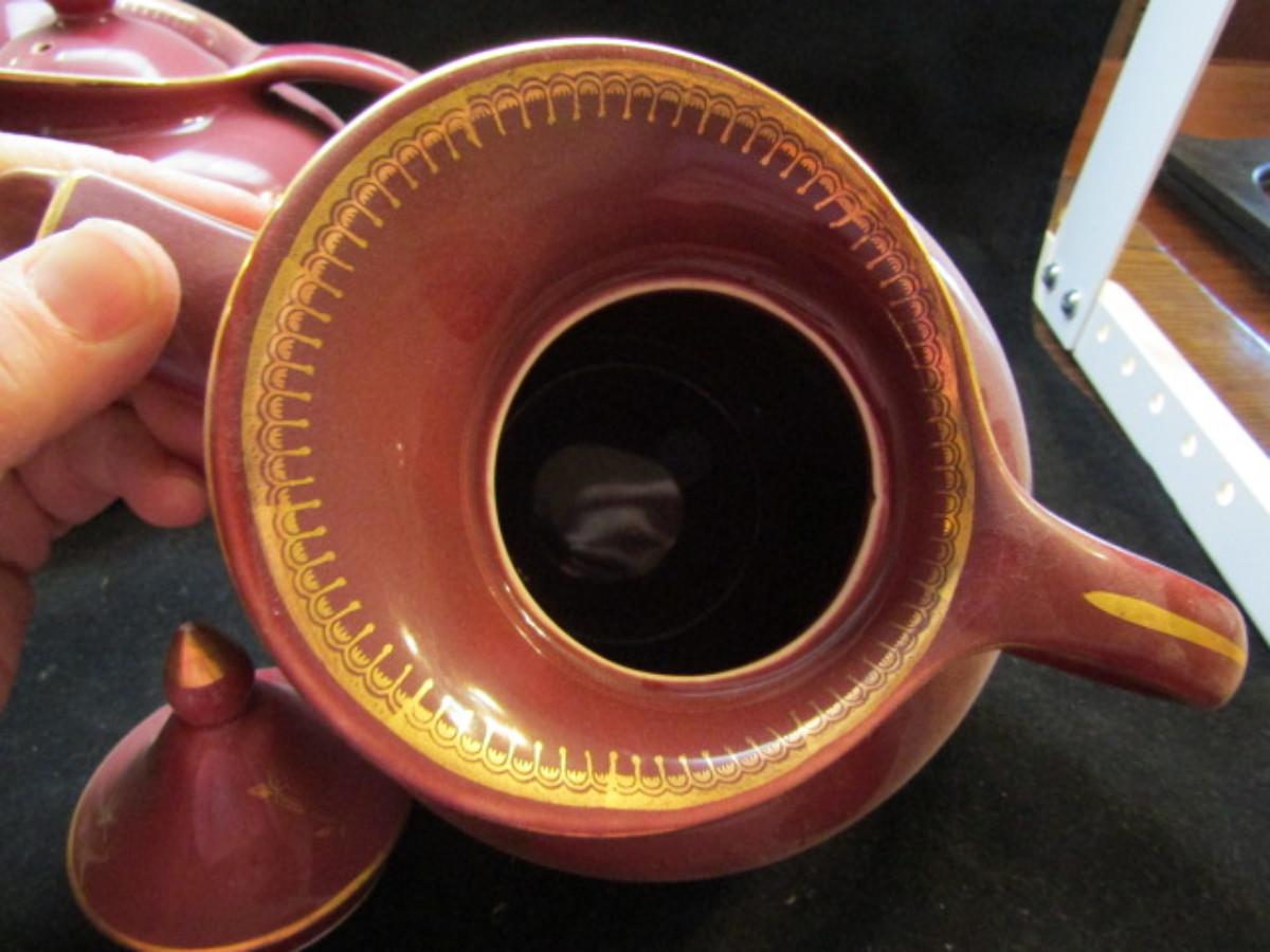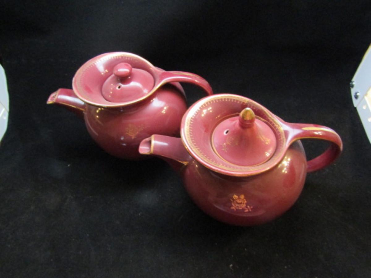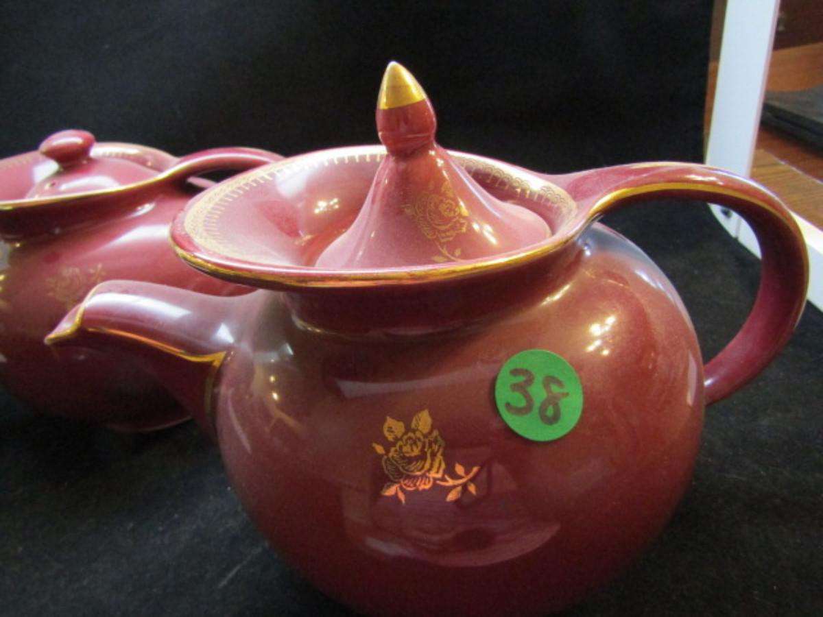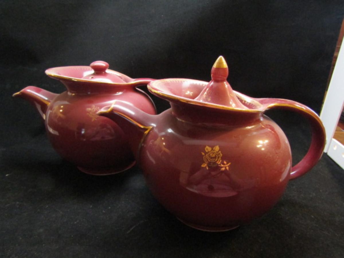 Pair of Hall Teapots- Cranberry and Gold (#38)
