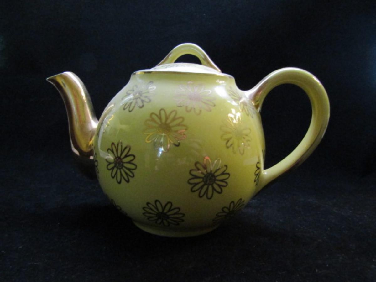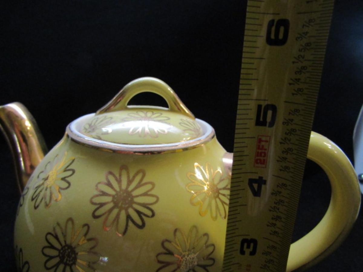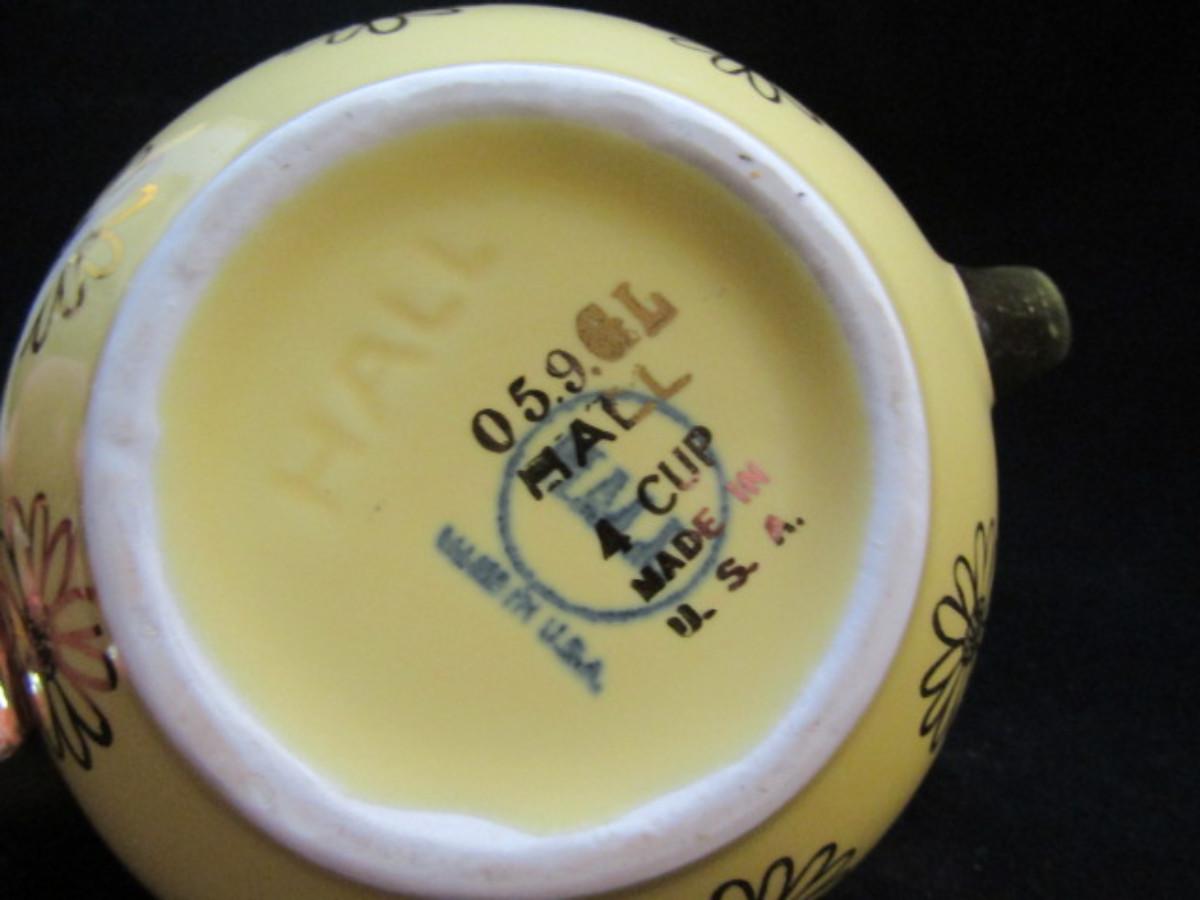 Pair of Hall Teapots- White and Yellow with Gold (#46)