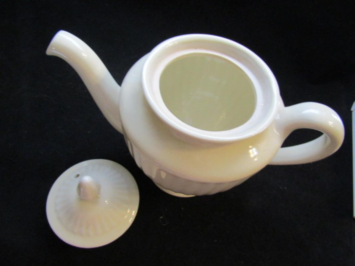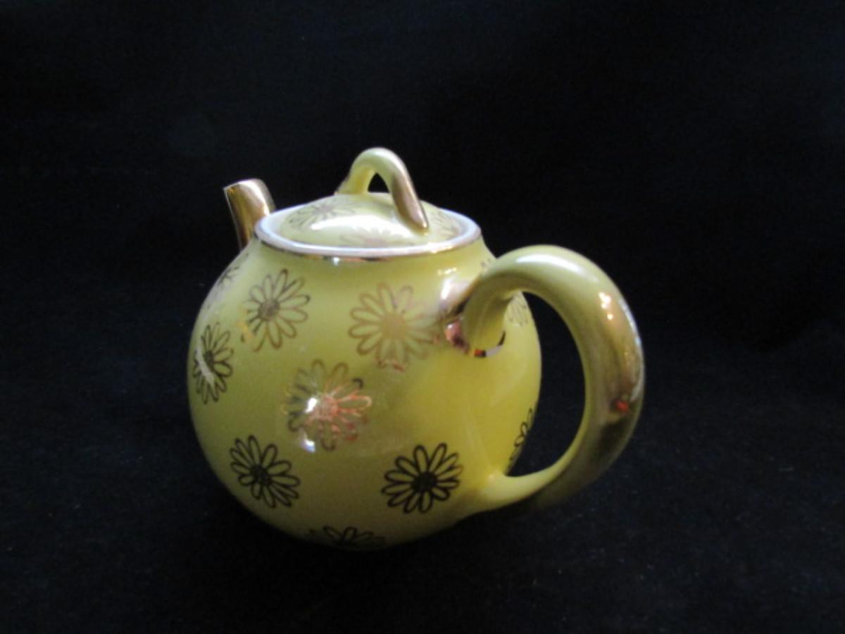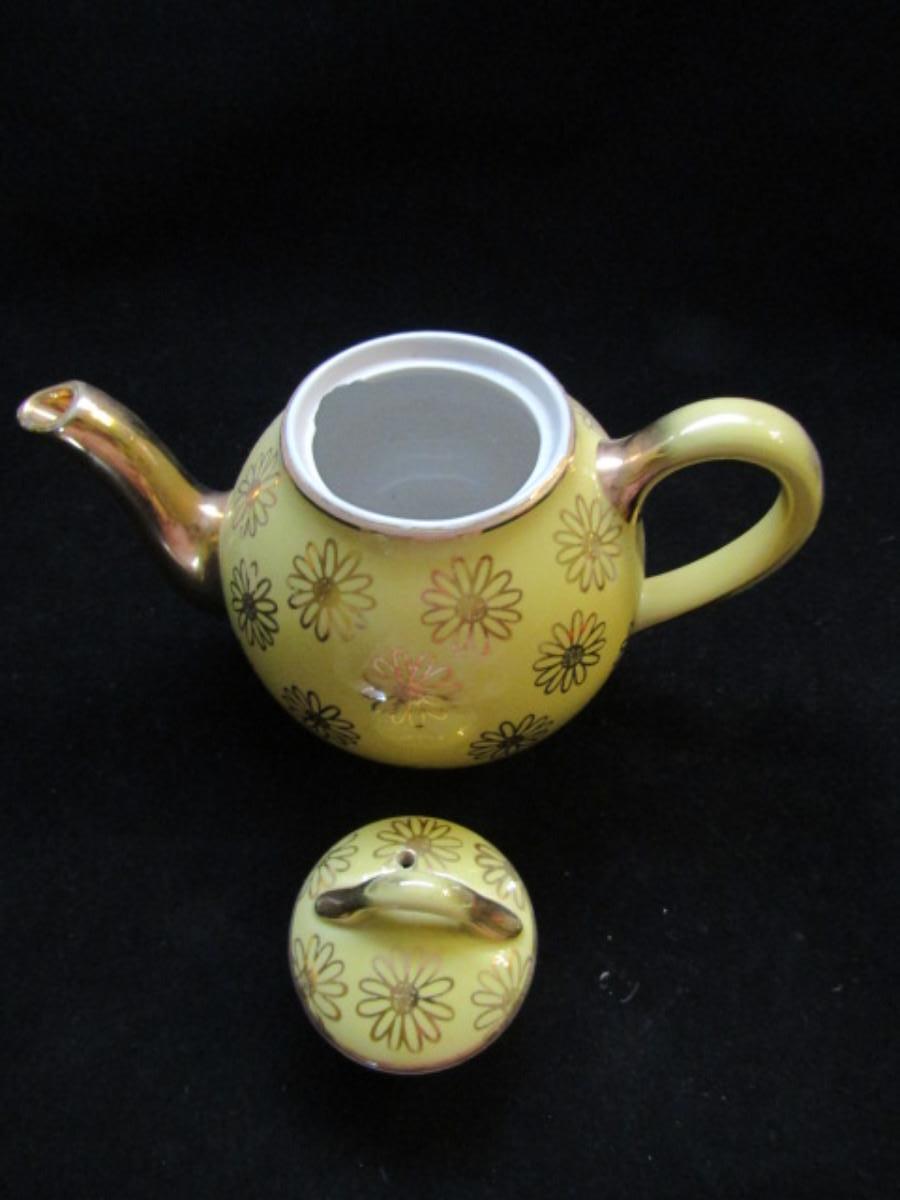 Pair of Hall Teapots- White and Yellow with Gold (#46)