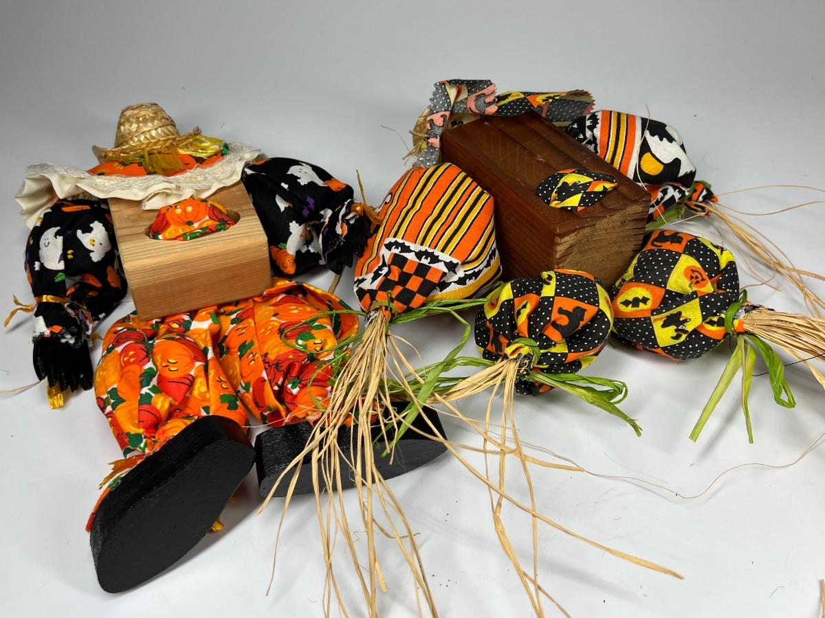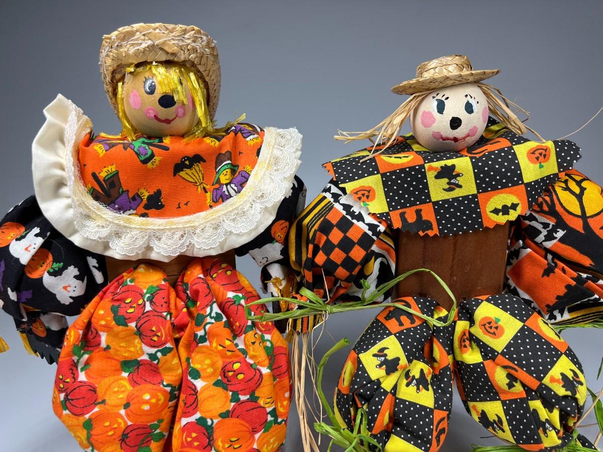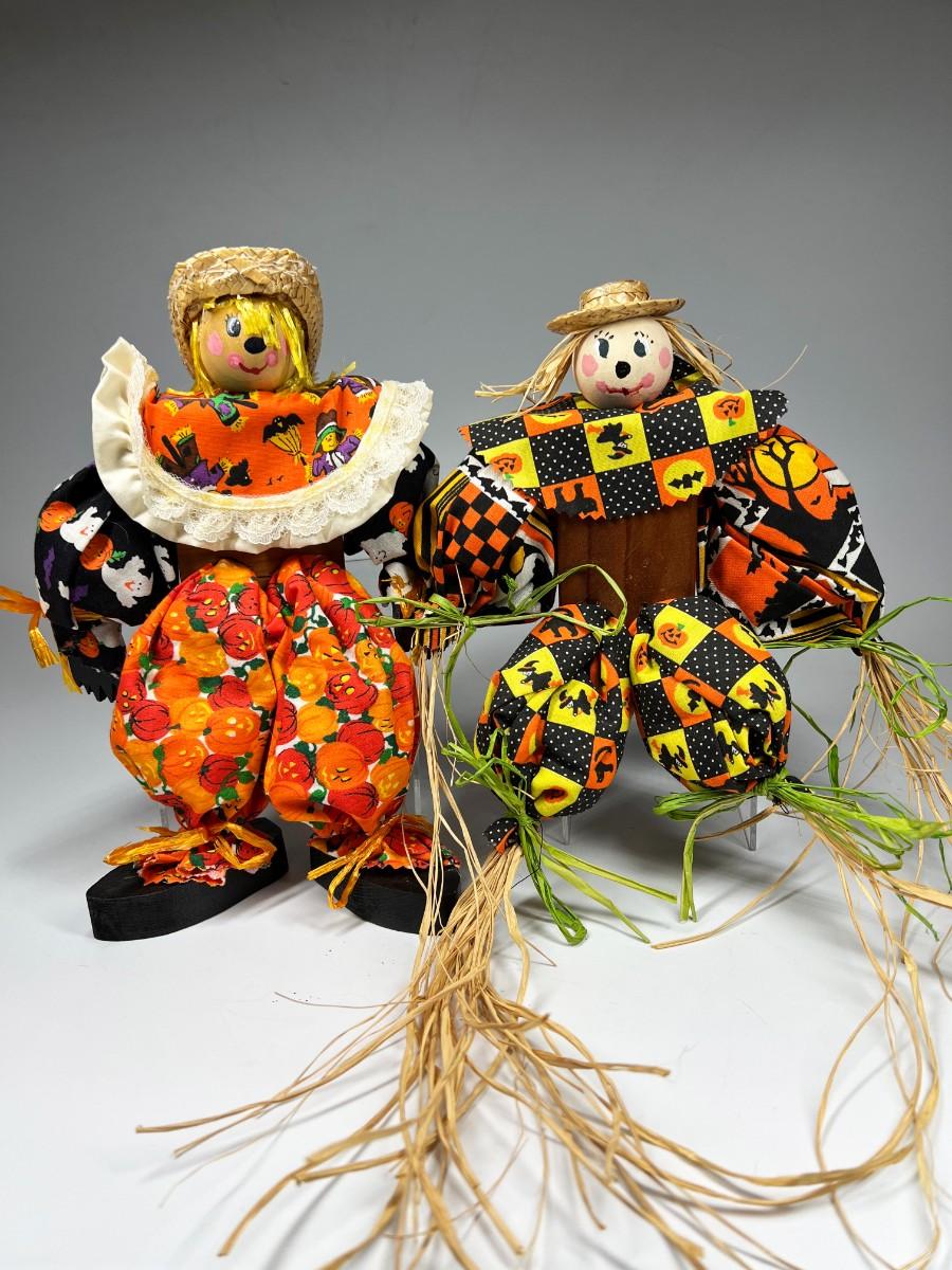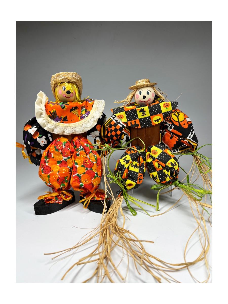 Pair of Halloween Scarecrow Colorful Cloth Halloween Decor Shelf Sitters