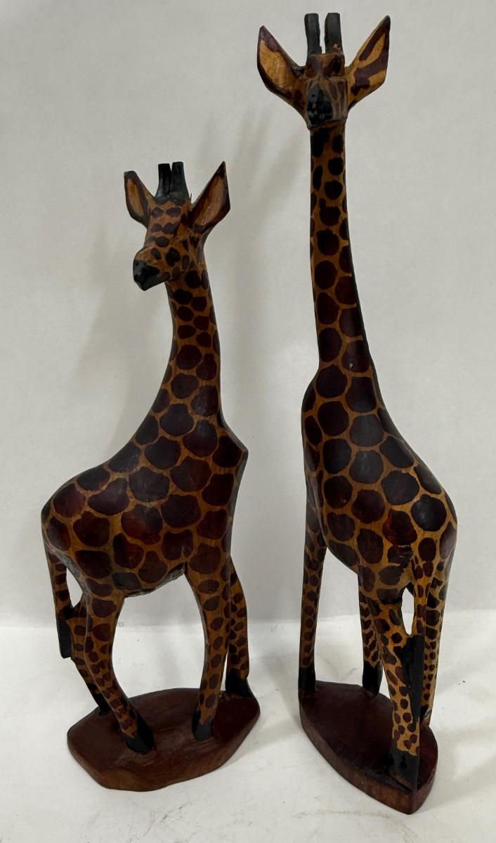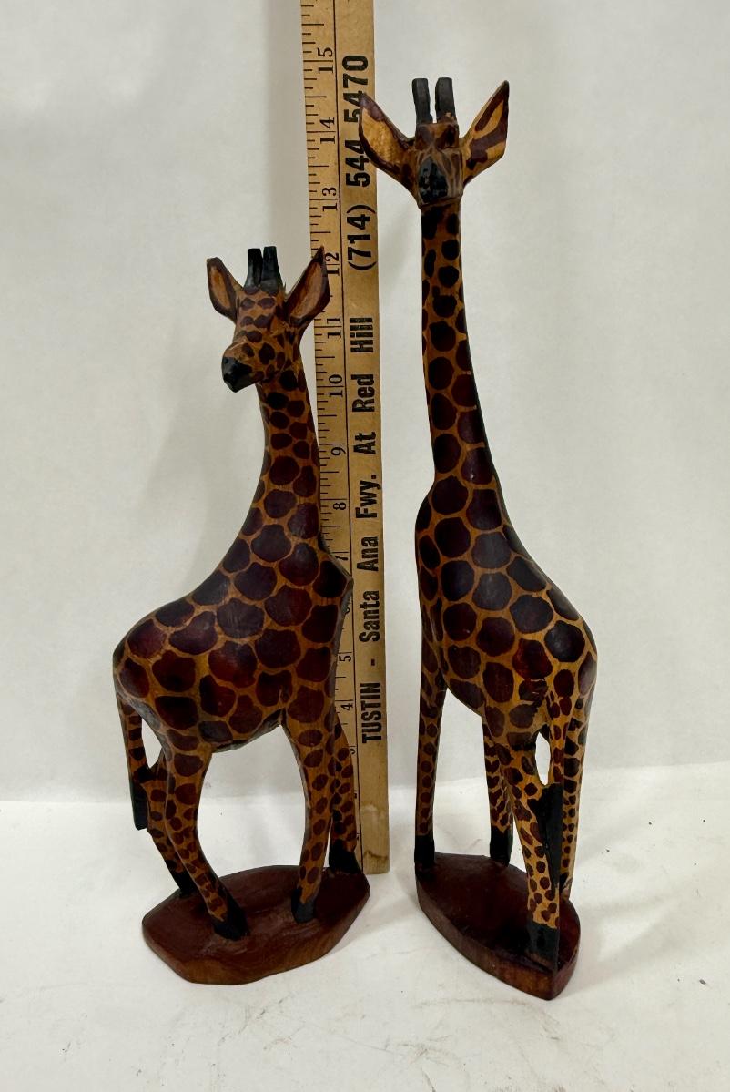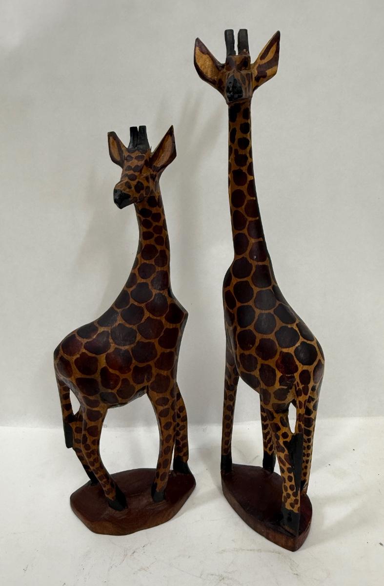 Pair of Hand Carved Wooden Giraffes made in Kenya