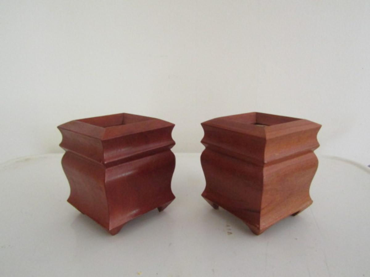 Pair of Hand Crafted Wood Candle Holders by Bob Hypes