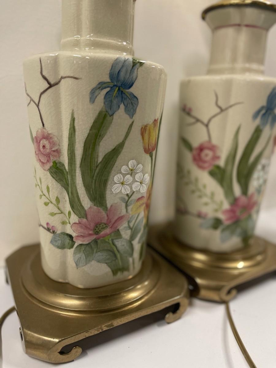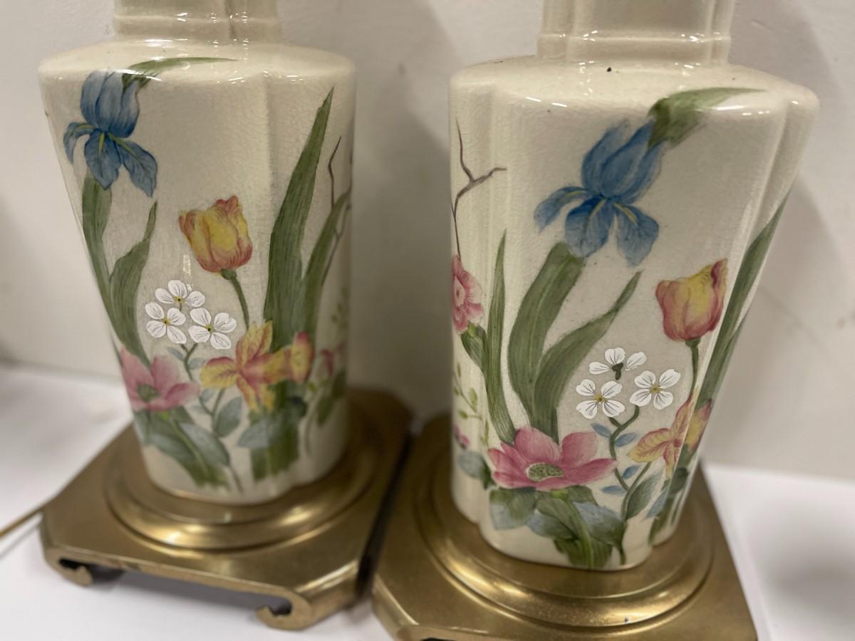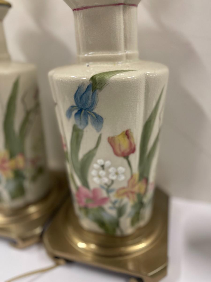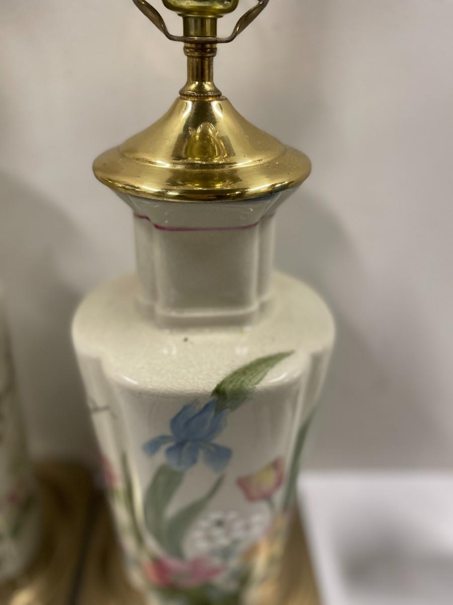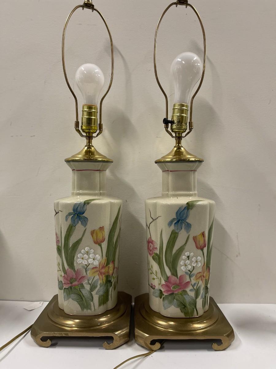 Pair of hand painted Asian style porcelain lamps. 27" tall. Excellent condition.