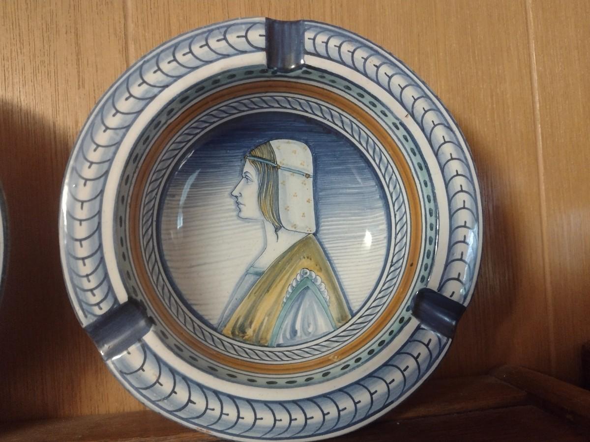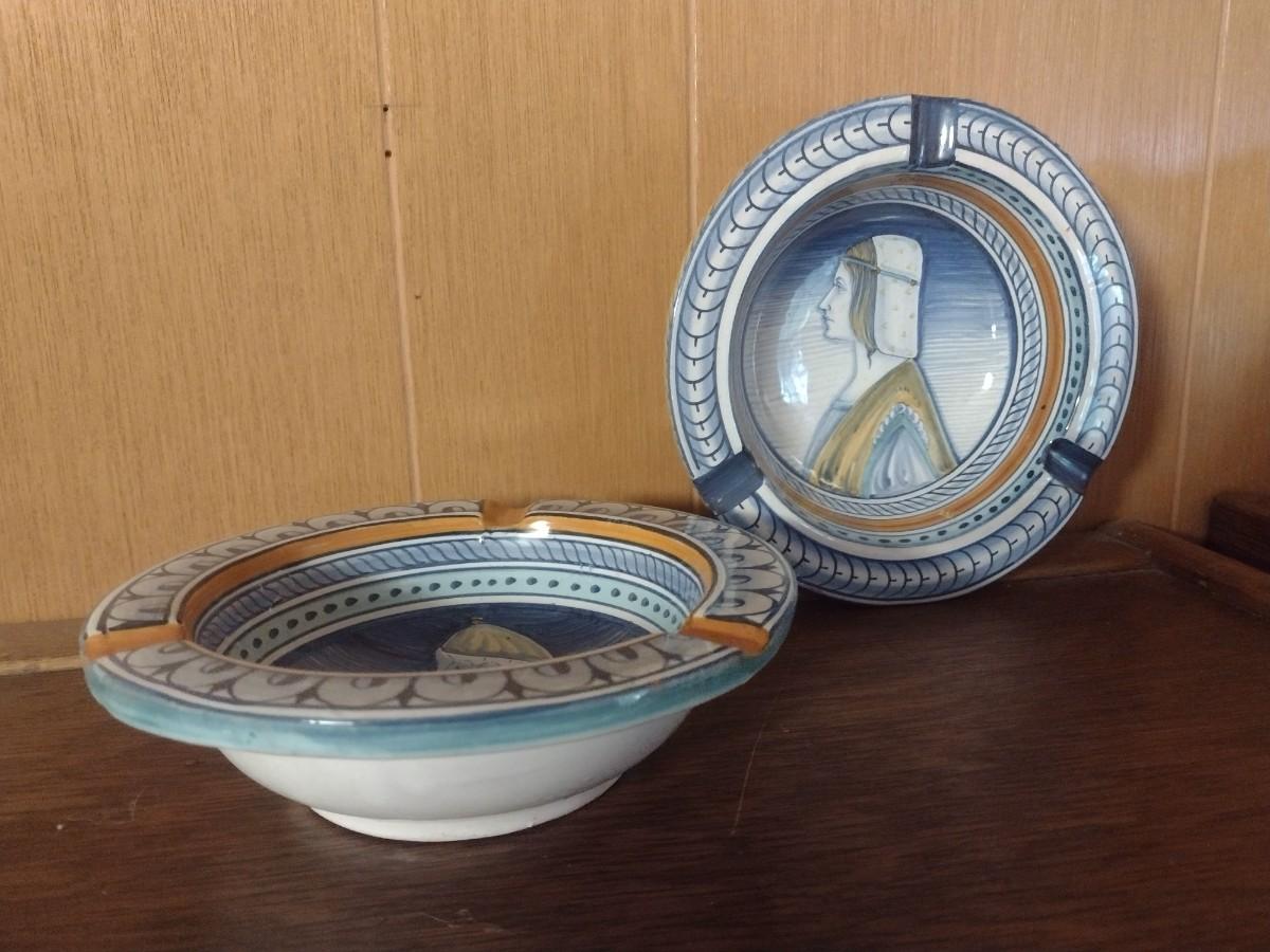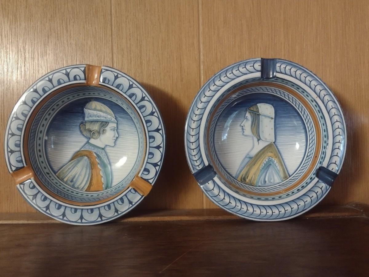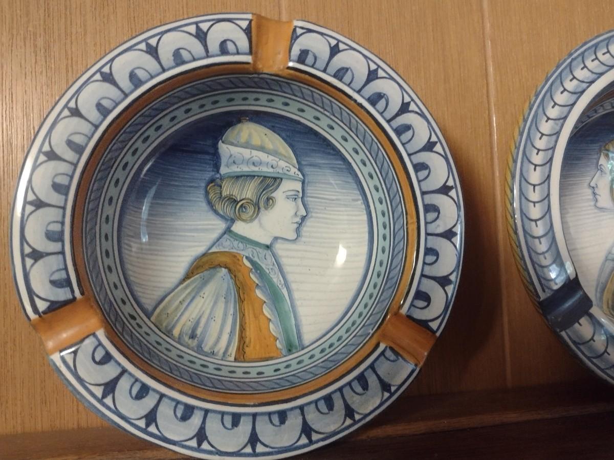 Pair of Hand Painted Portrait Italian Pottery Ashtrays