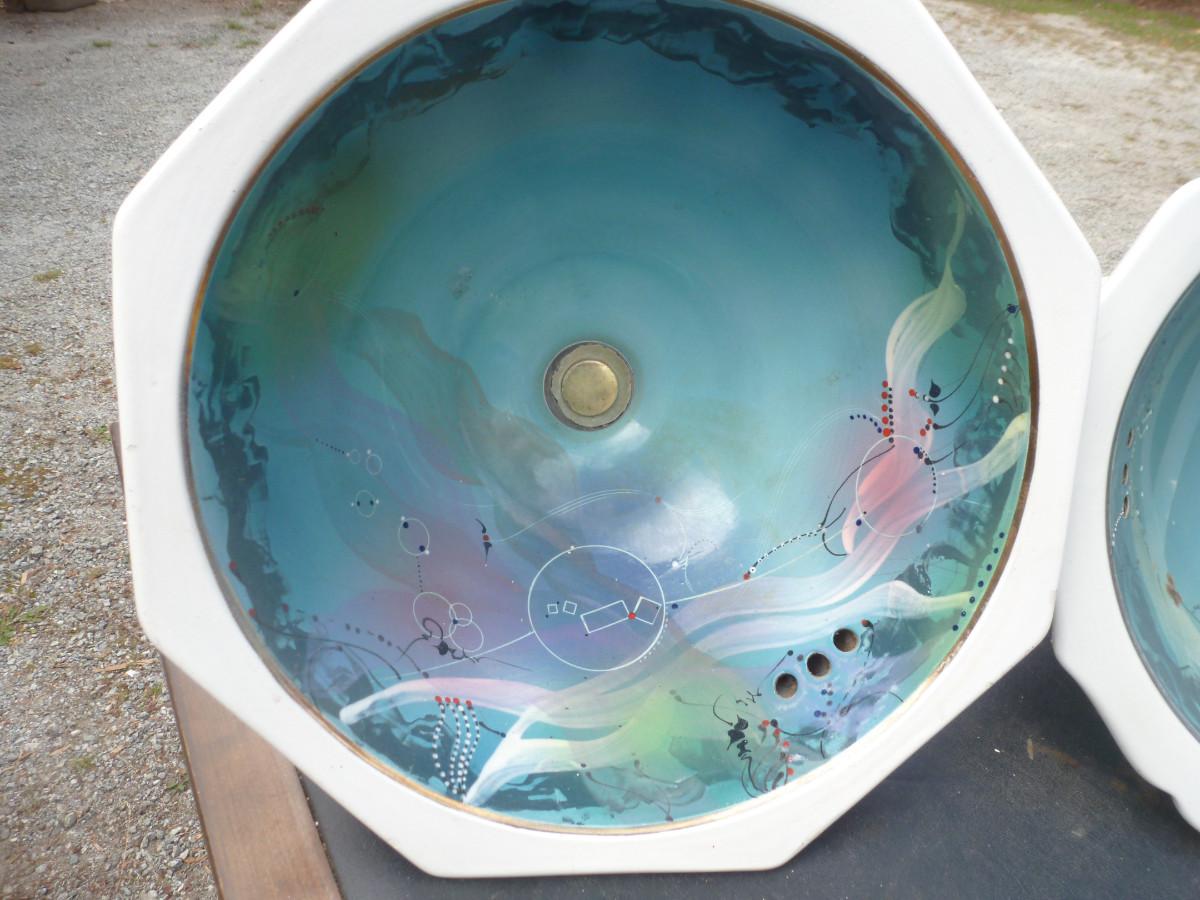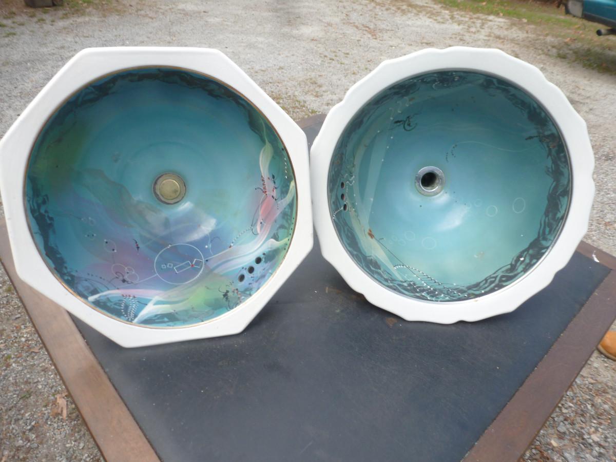 Pair of Hand Painted Sinks by NC Artist Gordon Batten- Signed and Dated 1994