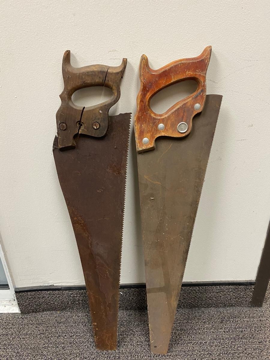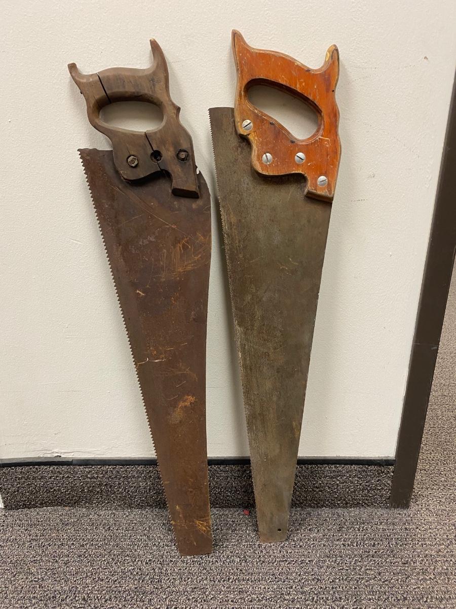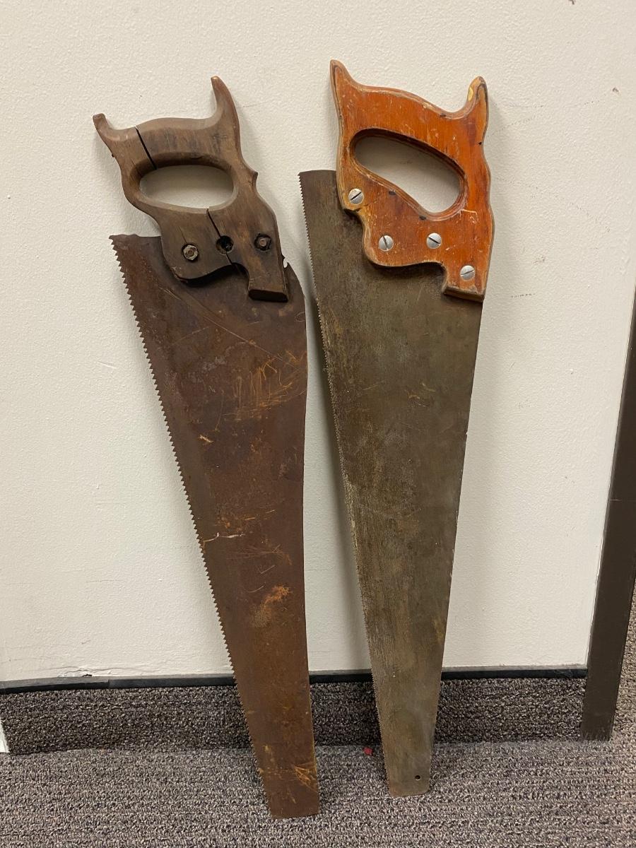 Pair of used vintage wood saws. Fair condition, one is in better condition than the other.