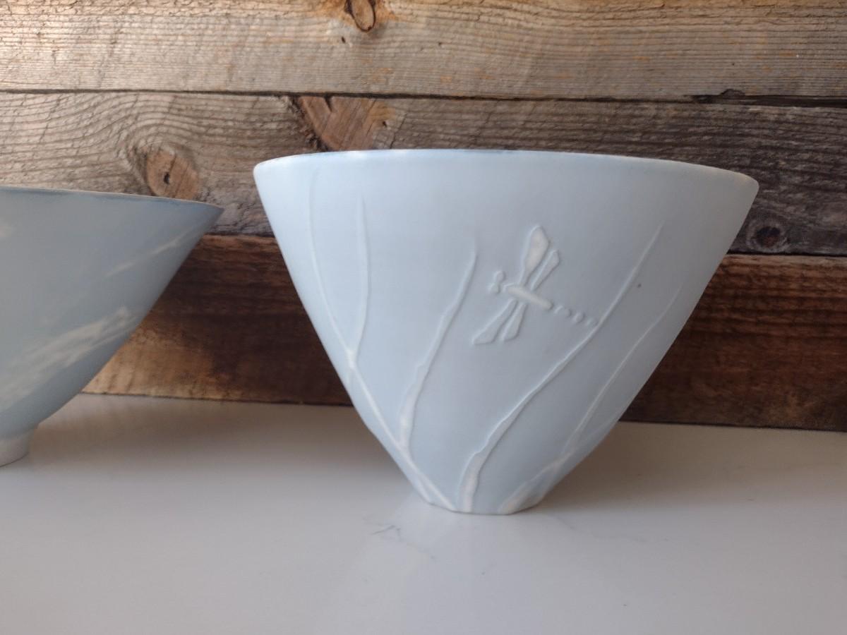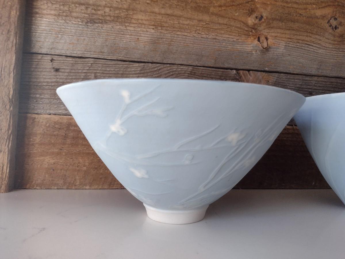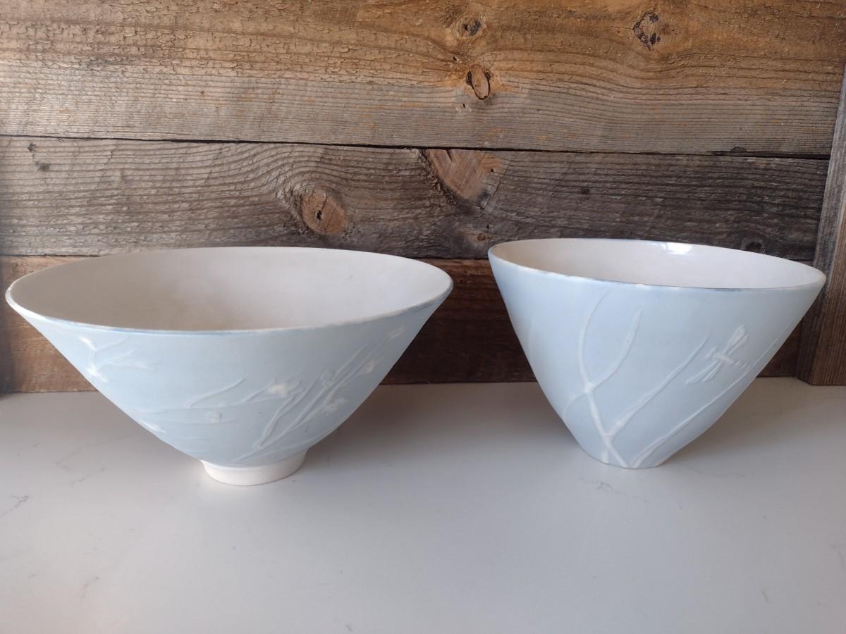 Pair of Hand Thrown Bowls with Slip Design Accent by Fran Symes
