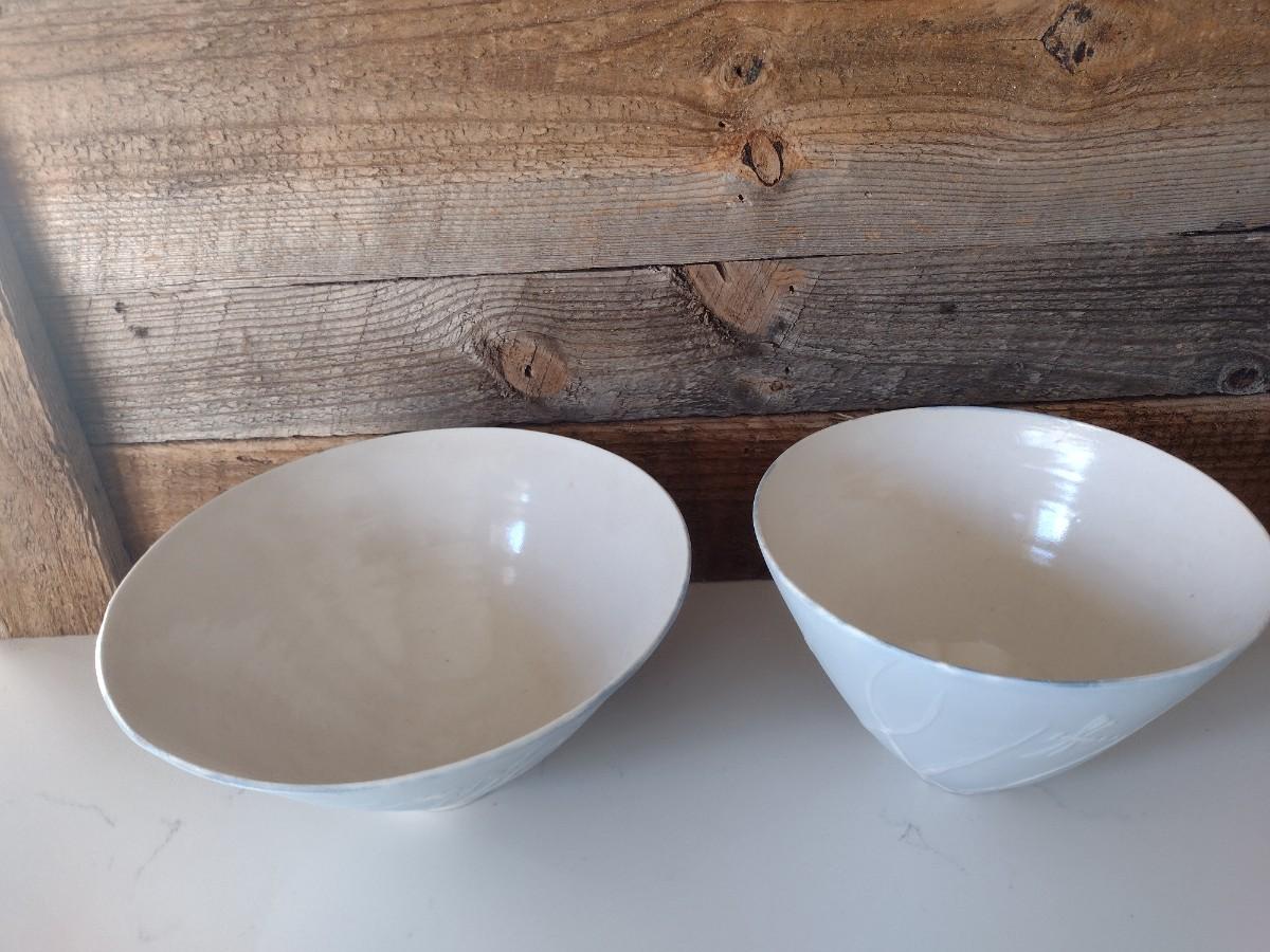 Pair of Hand Thrown Pottery Bowls with Slip Accent by Fran Symes