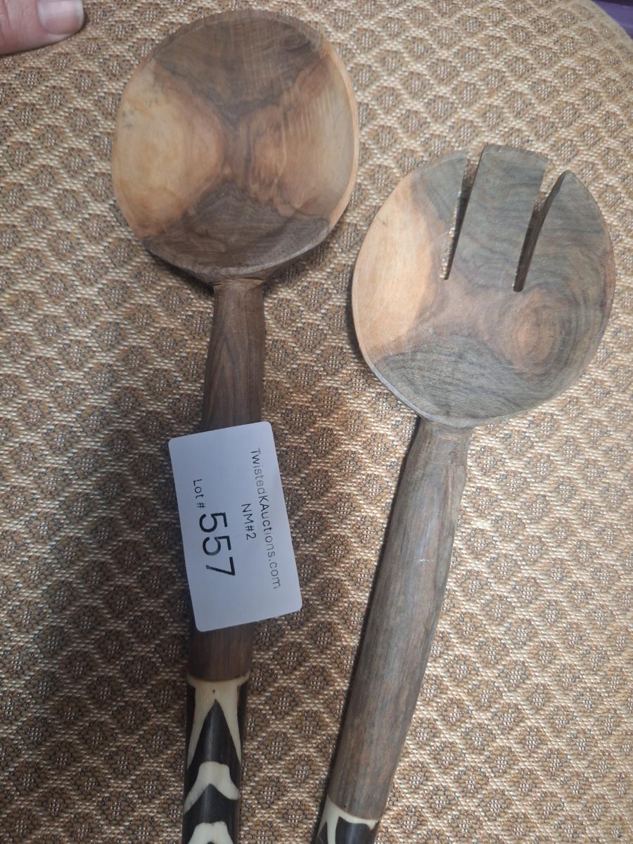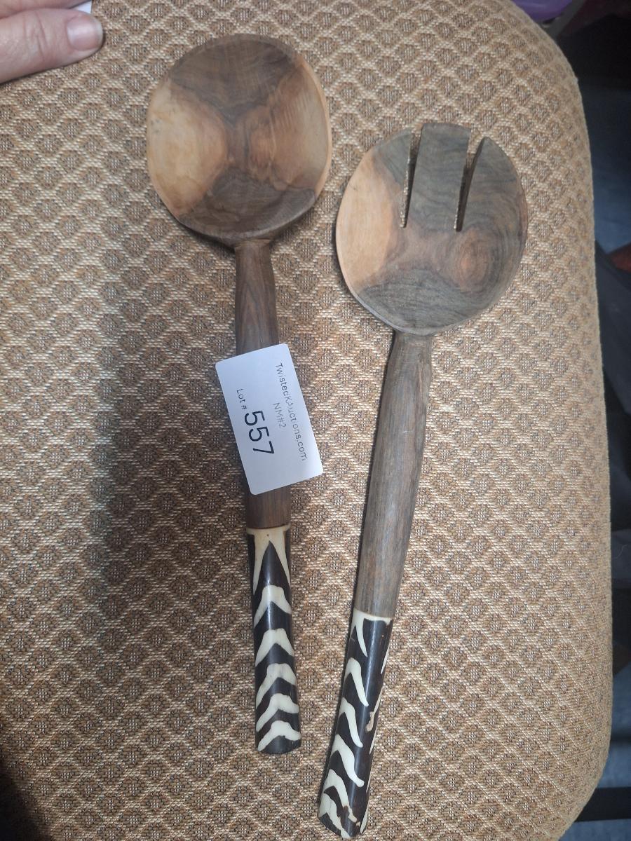 pair of hand-carved African Salad serving utensils