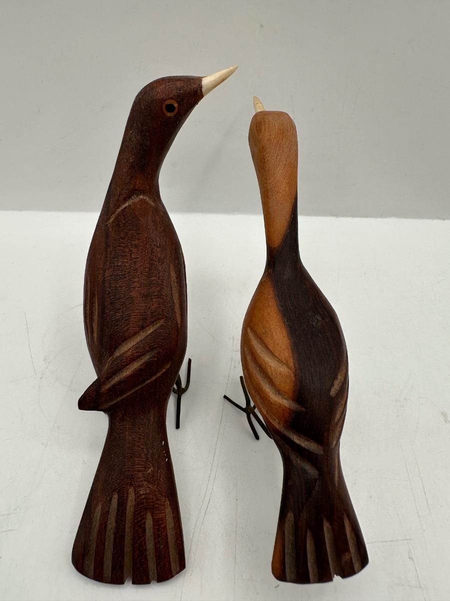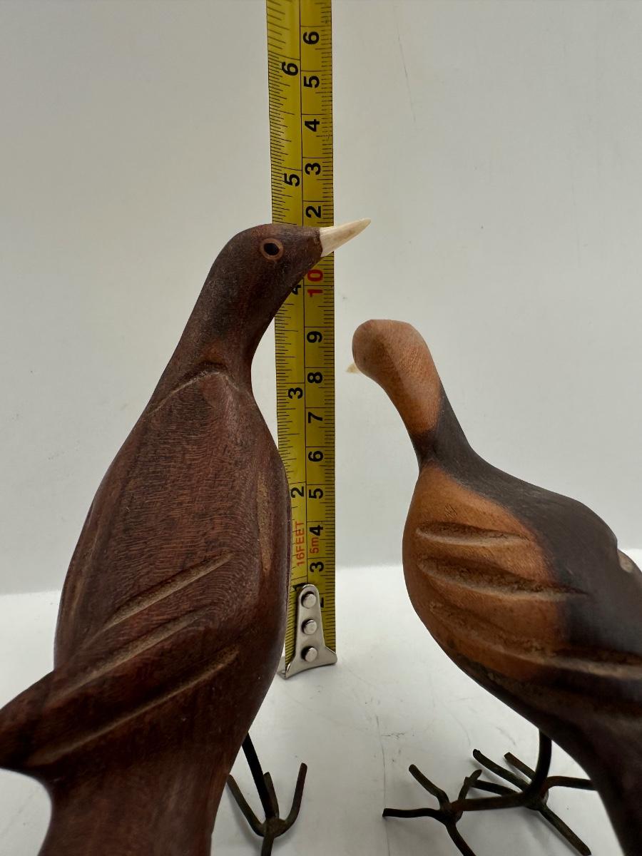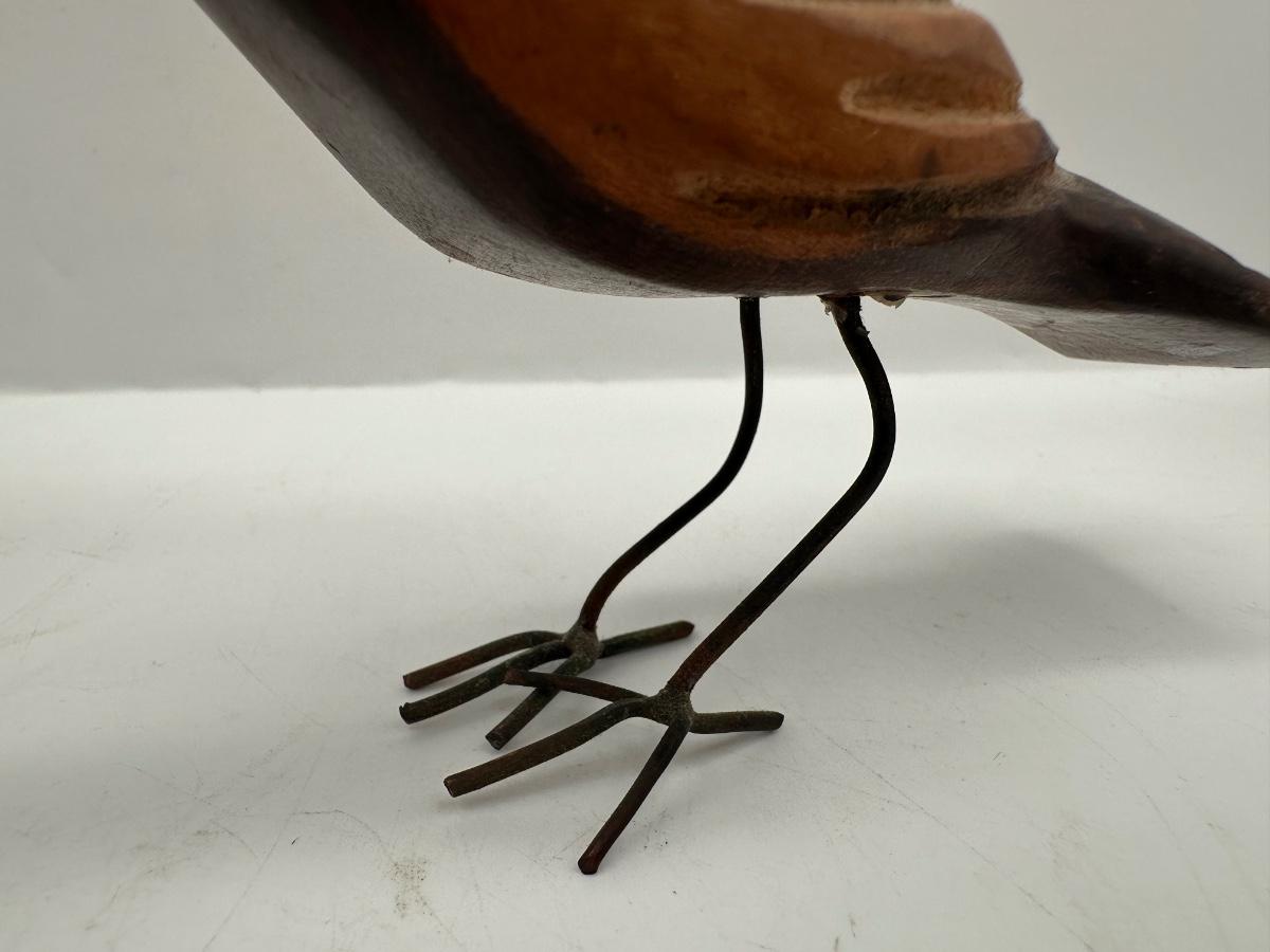 Pair of Hand-Carved Wooden Birds with Wire Legs
